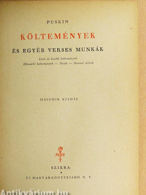 Puskin műveinek az Antikvarium.hu-n kapható vagy előjegyezhető listáját itt tekintheti meg: Puskin könyvek, művek