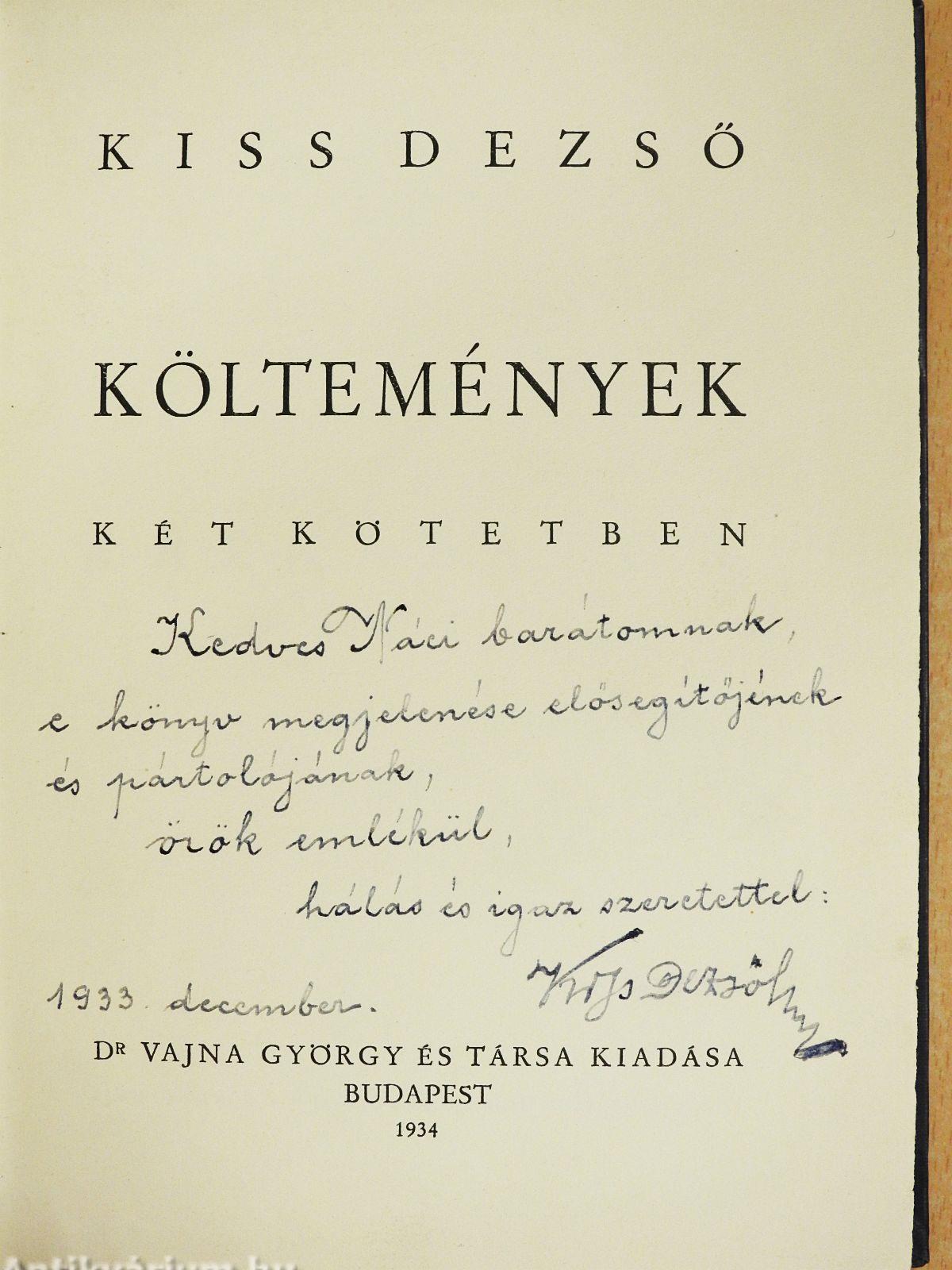 | Megjegyzés: | Kiss Dezső szerző által dedikált példány. Athenaeum Irodalmi és Nyomdai R.-T. Könyvnyomdája. |