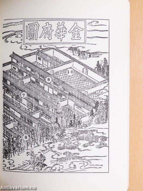 „A templomfőnöknek - ezt Di bíró megfigyelte - külön húsmentes ételt, olajban sült tofut szolgáltak fel, de ő hozzá sem nyúlt. Vaskos ujjai között egy darab cukrozott gyümölcsöt morzsolgatott, s dülledt szeme az ajtónyílásra szegeződött, amelyen át a költőnő eltűnt az imént. Lo kezéből hirtelen kiesett az evőpálcika, és nagyot koppant az asztalon. A járásfőnök elfojtott egy kiáltást, némán mutatott ai ajtónyílásra. Di bíró hátrafordult a széken.