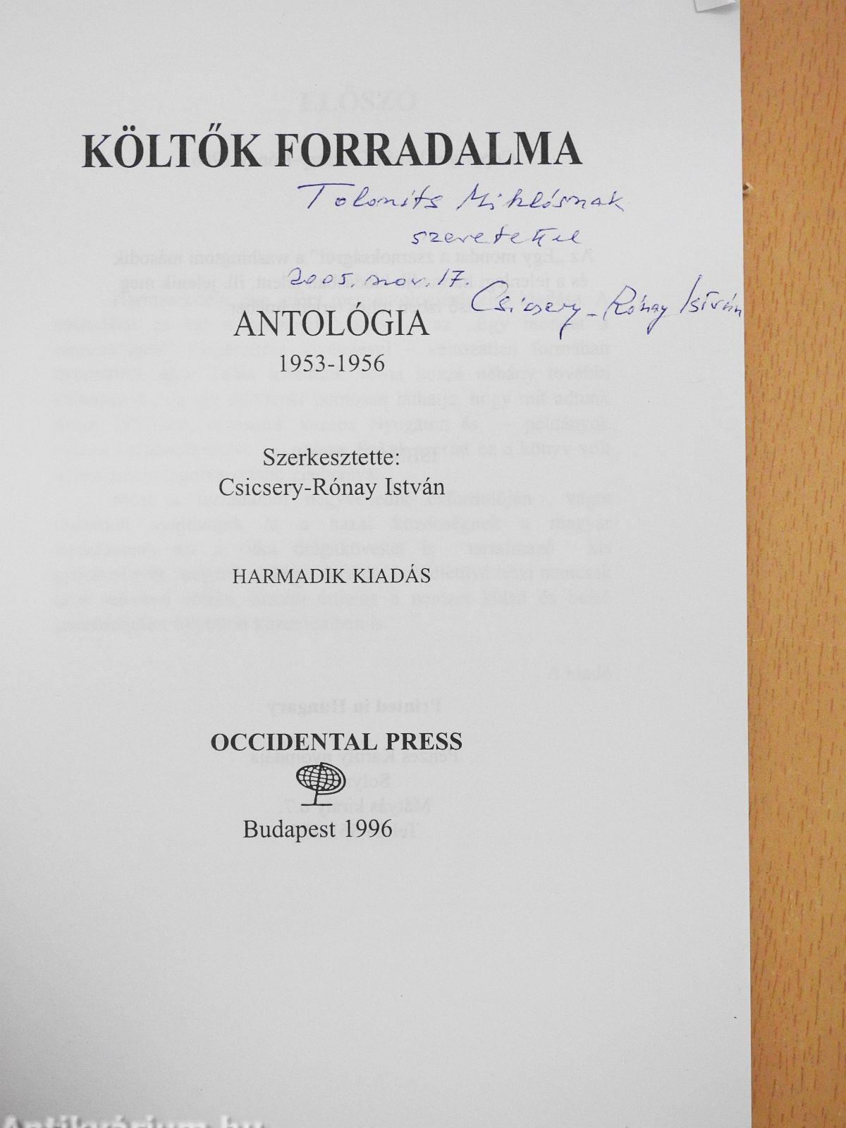 | Megjegyzés: | Csicsery-Rónay István szerkesztő által dedikált példány. |