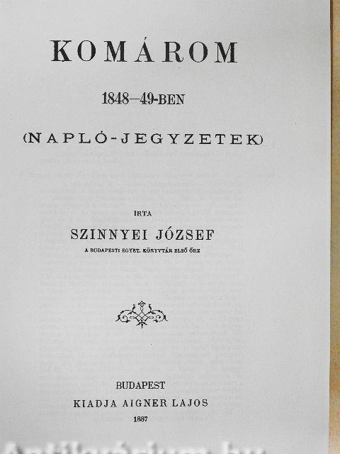 A könyv, melyet a Tisztelt Olvasó a kezében tart, mind tartalmát, mind pedig hitelességét és magával ragadó erejét tekintve kiemelkedő helyet foglal el a forradalom és a szabadságharc korszakával foglalkozó történeti irodalomban. Témája az 1848-49-ben Komáromban és környékén történtek összefoglalása - egyrészt a szemtanú és a résztvevő saját élményeit és tapasztalatai, másfelől a tudós történetbúvár kutatási eredményei alapján. A kettő egy és ugyanazon személy: idősebb Szinnyei József. Szinnyei József 1830. március 18-án Komáromban született, Ferber Alajos kocsmáros, későid) városi híd- és piaci vámbérlő, valamint Hikker Juliánna gyermekeként. (Nevét 1848-ban magyarosította Szinnyeire.) Tanulmányait szülővárosában, a nyitrai piarista gimnáziumban, valamint Pesten, illetve a győri jogakadémián (1846-1848) végezte. A forradalom és szabadságharc céljaiért lelkesedő jurátus 1848. október 21-én állt be a Komáromban alakuló 37. honvédzászlóaljhoz, és a komáromi várőrség kötelékében küzdötte végig a szabadságharcot. Előbb írnok, illetve szolgálatvezető őrmester volt, 1849. júniusában hadnagy lett, végül augusztus 29-én főhadnaggyá nevezték ki a 203. zászlóaljhoz. Mindezenközben - mint későbbi önéletrajzában írja - átélt „négyheti bombázást és 13 csatát" - és szorgalmasan vezette naplóját. 1848. október 16-tól 1849. október 6-ig terjedő naplójában naponta feljegyezte a vele- és a közvetlen környezetében történteket, valamint a fontosnak tartott híreket.