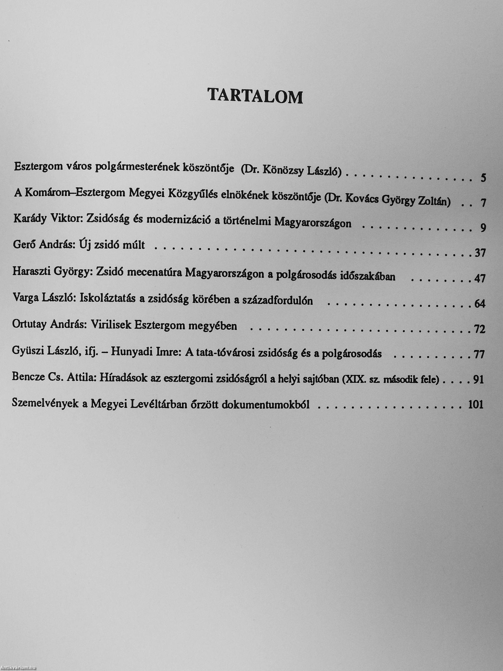 | Megjegyzés: | Az 1995. május 12-én, Esztergomban tartott "A zsidóság szerepe a magyarországi polgári fejlődésben (XIX-XX. század)" című konferencia anyaga. |