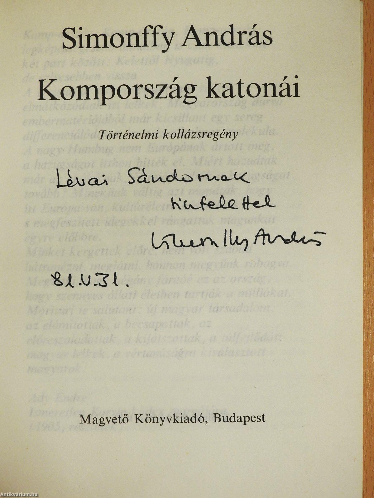 | Megjegyzés: | Simonffy András szerző által aláírt példány. |