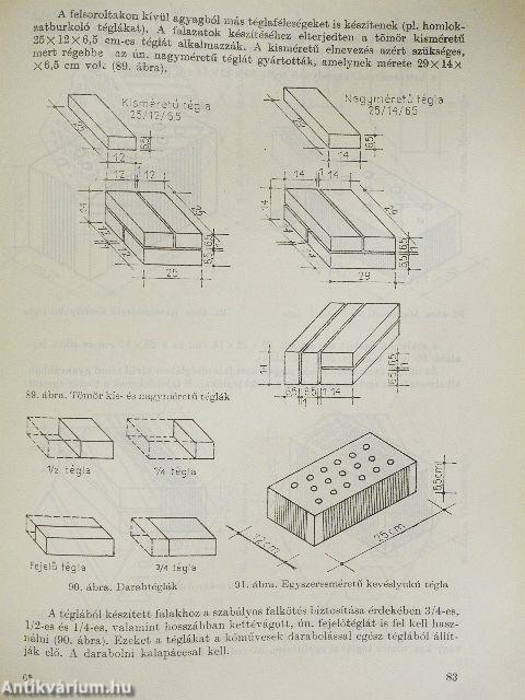 | Téglafajták és méreteik | 82 |
