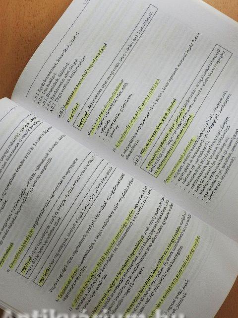 Több lapon színes sorkiemelés, aláhúzás, jelölés látható.