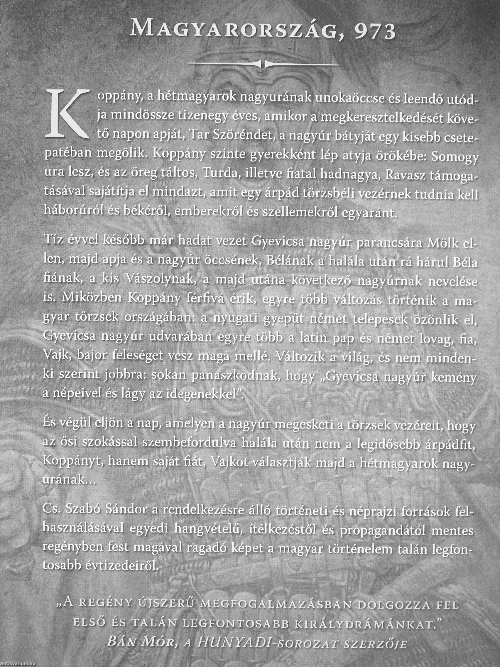 '"'v fiának, a kis Vászolynak,* a majd ^tttáTia kövéücéző-riagytifrtak nevelése ^ ' ' is. Miközben Koppány férfivá\éíík, ^yre^öbb Változás történik a ma-. gyar törzs^lc/országába^. a ^nyugati ^y^^^ el,