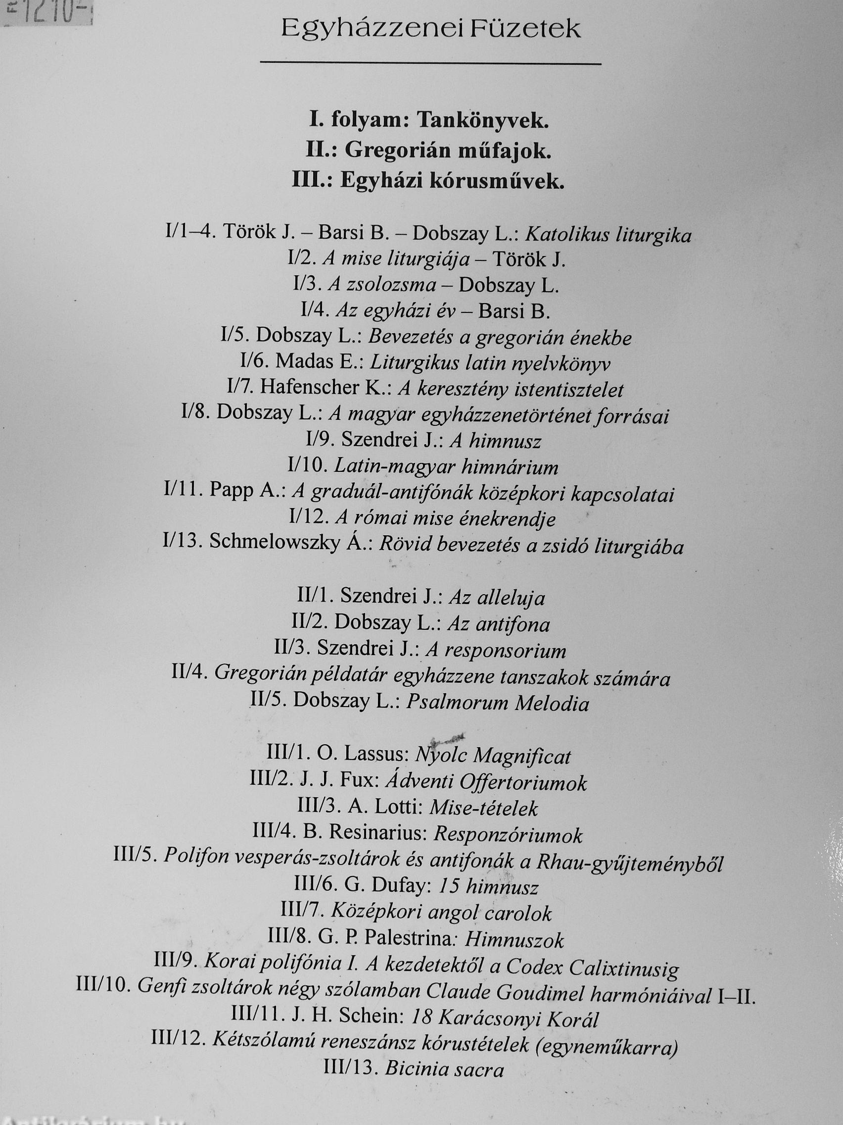 | Sorozatcím: | Egyházzenei füzetek |