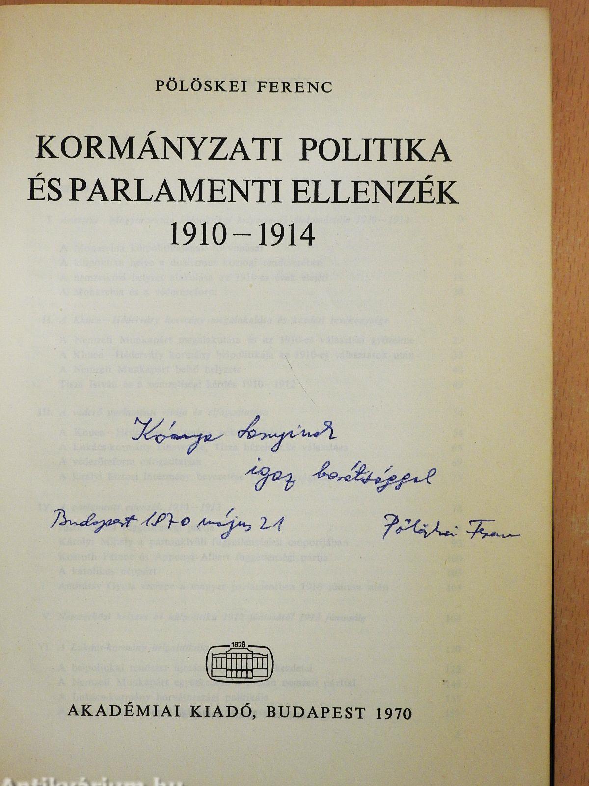 Kormányzati politika és parlamenti ellenzék 1910-1914 (dedikált példány) Kormányzati politika és parlamenti ellenzék 1910-1914 (dedikált példány) Kormányzati politika és parlamenti ellenzék 1910-1914 (dedikált példány) Kormányzati politika és parlamenti ellenzék 1910-1914 (dedikált példány) Kormányzati politika és parlamenti ellenzék 1910-1914 (dedikált példány)