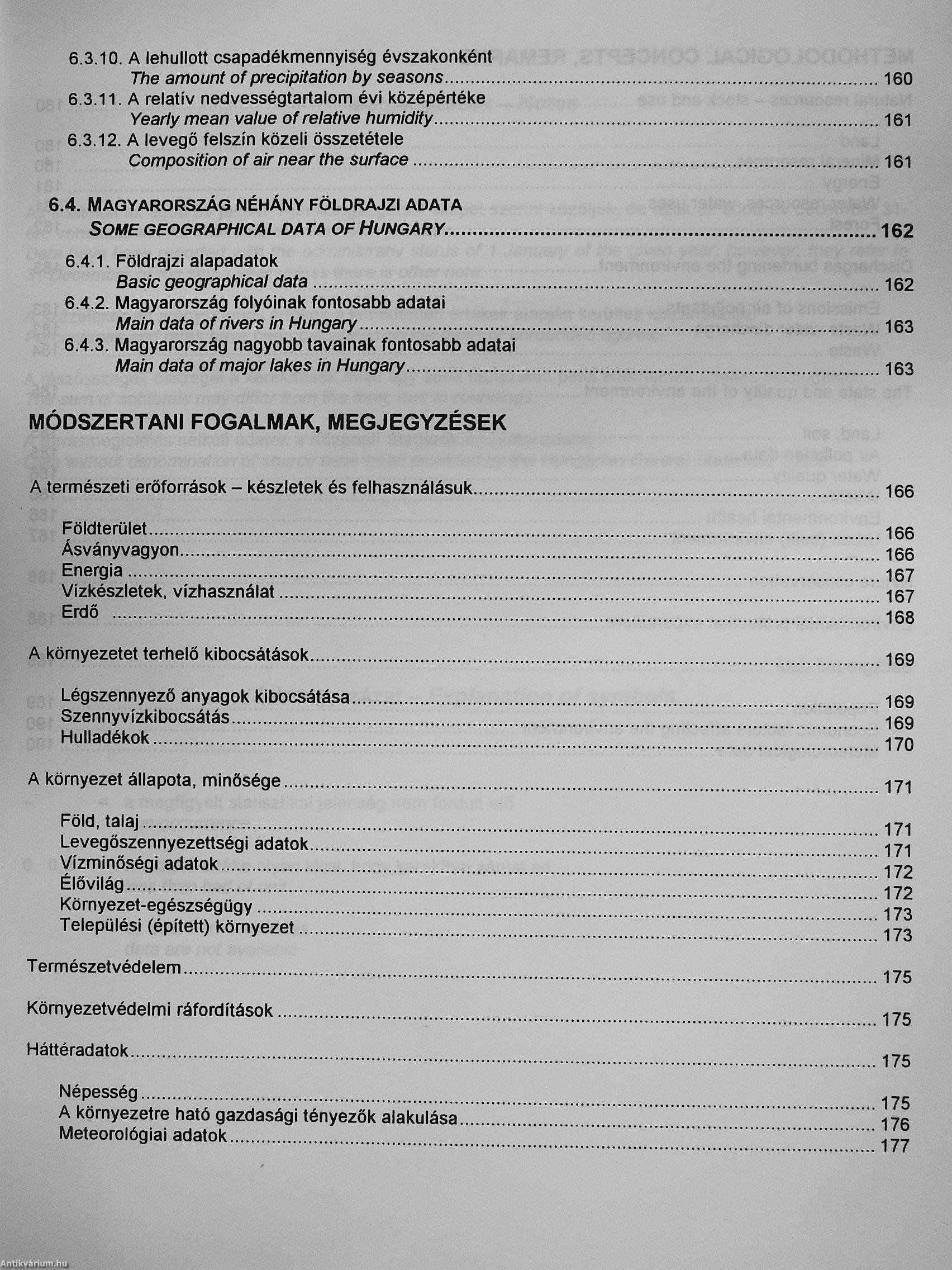 A tartalomból: földterület, ásványvagyon, energia, vízkészletek, vízhasználat, erdő; légszennyező anyagok kibocsátása, szennyvízkibocsátás, hulladékok; talaj, levegőszennyezettség, vízminőség, élővilág, környezet-egészségügy, települési