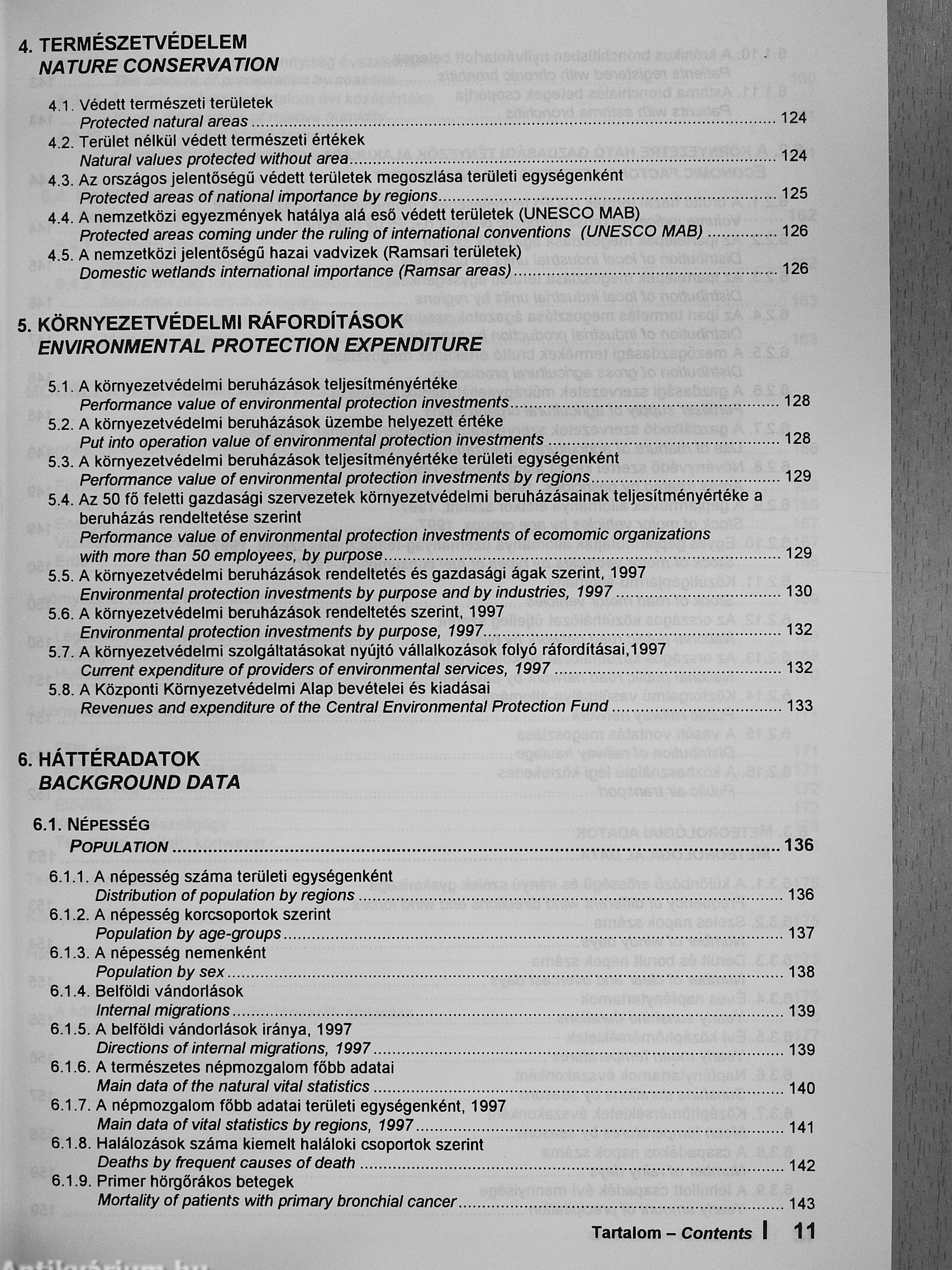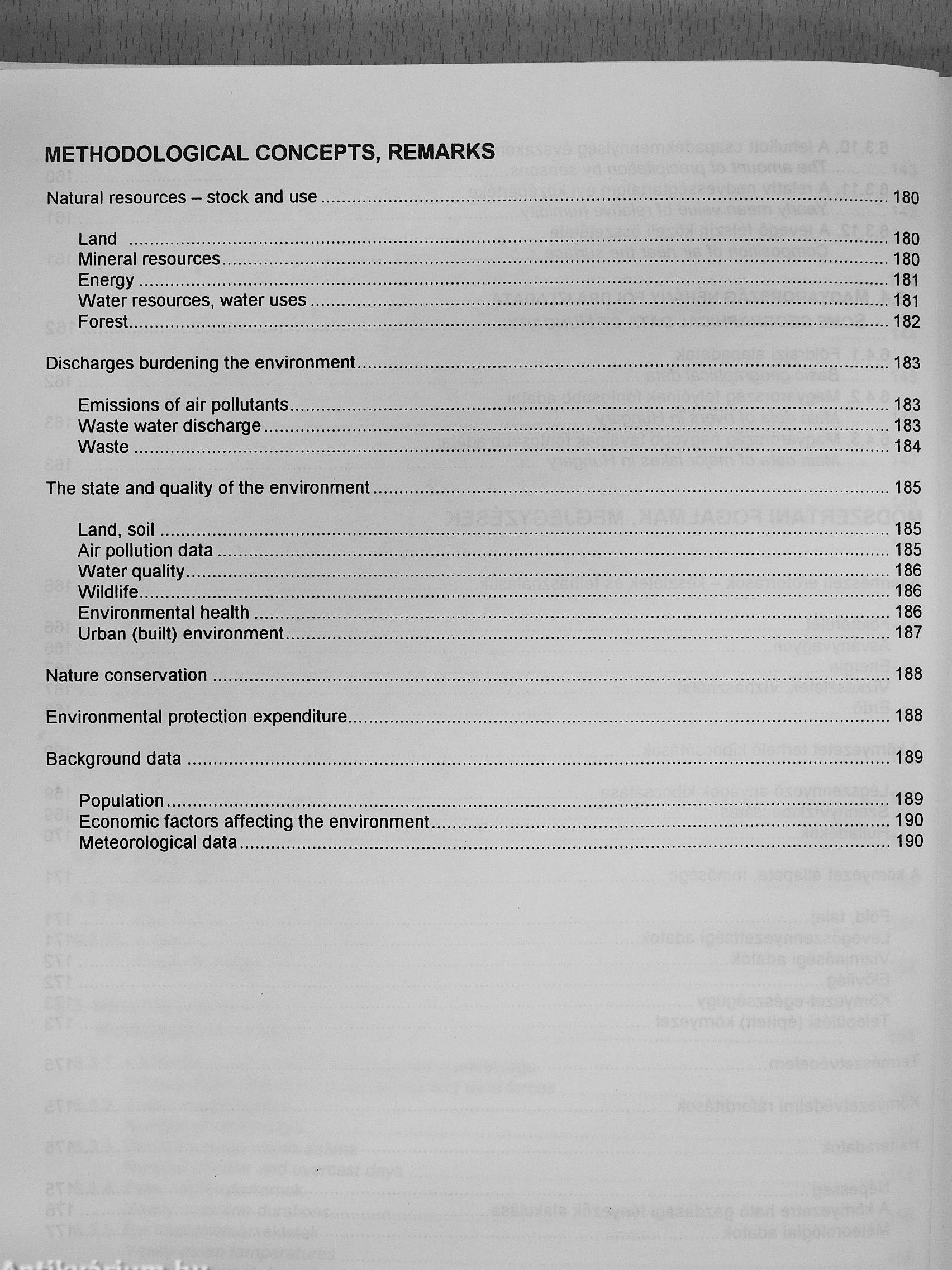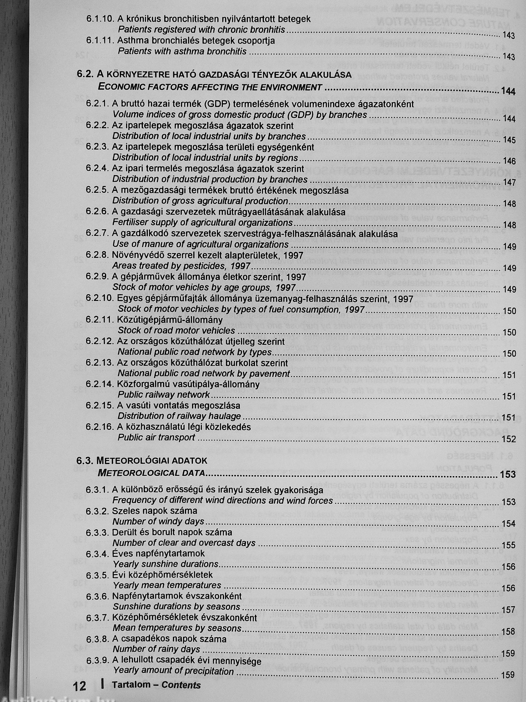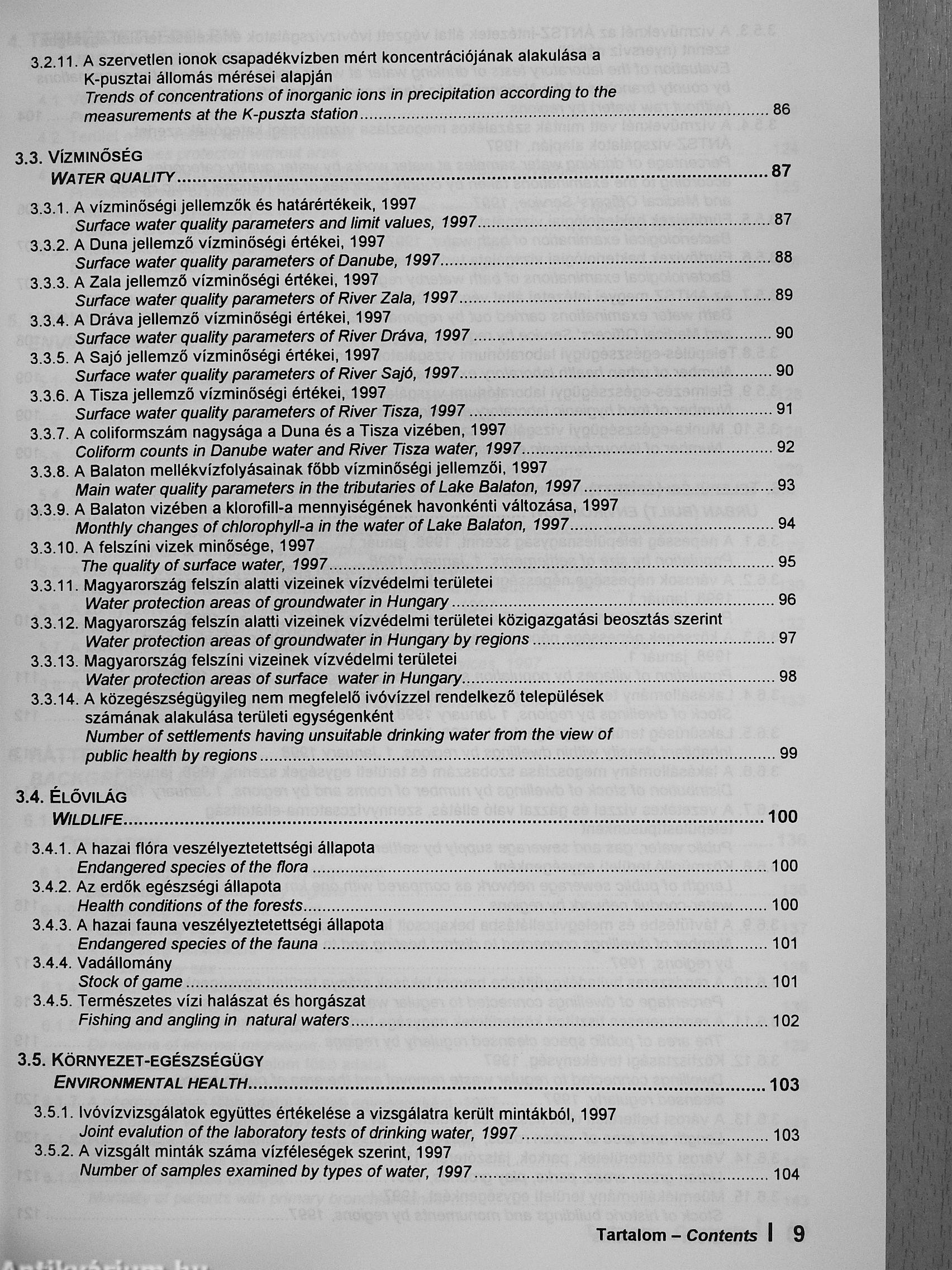 A tartalomból: földterület, ásványvagyon, energia, vízkészletek, vízhasználat, erdő; légszennyező anyagok kibocsátása, szennyvízkibocsátás, hulladékok; talaj, levegőszennyezettség, vízminőség, élővilág, környezet-egészségügy, települési