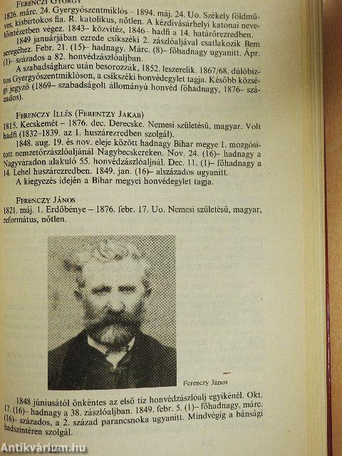 A mű második része a küzdelemben részt vevő több mint kétezerhatszáz százados, századparancsnok életrajzi adatait tartalmazza szócikkek formájában. A sok ismert név mellett (Kosztolányi Ágoston, Kosztolányi Dezső nagyapja, Petőfi István, a költő öccse, Báró Podmaniczky frigyes, a városépítő közéleti férfi, Vasvári Pál, a márciusi ifjak egyike stb.) megrendítő, tragikus, hányatott vagy éppen regénybe illően kalandos életutak sokasága... Tovább
