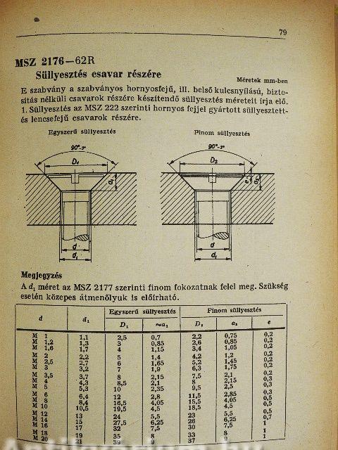 | MSZ 2176-62 Süllyesztés csavar részére | 79 |