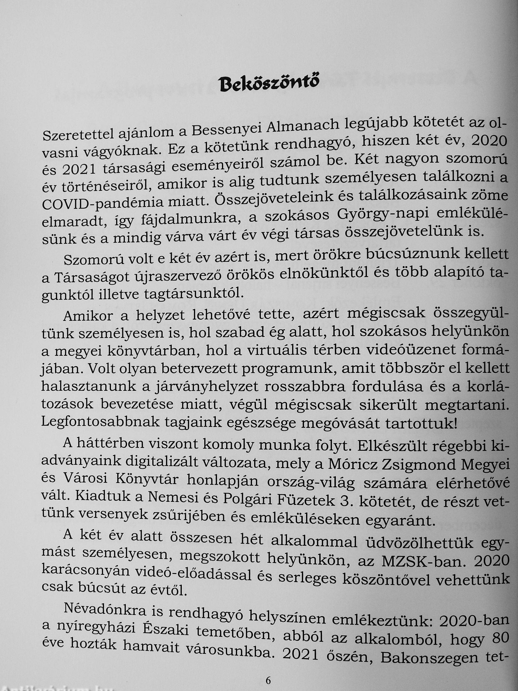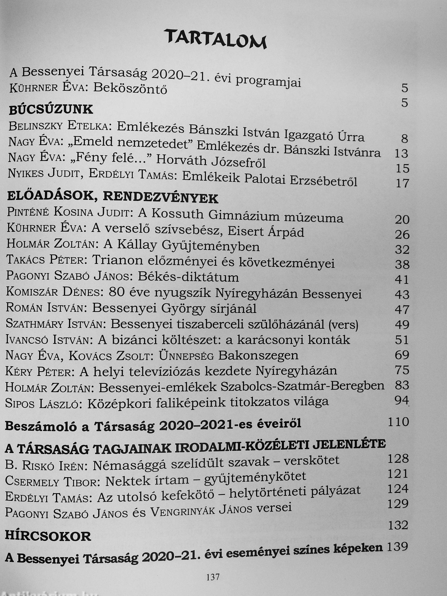 A Bessenyei Irodalmi és Művelődési Társaság Évkönyve 2020-2021