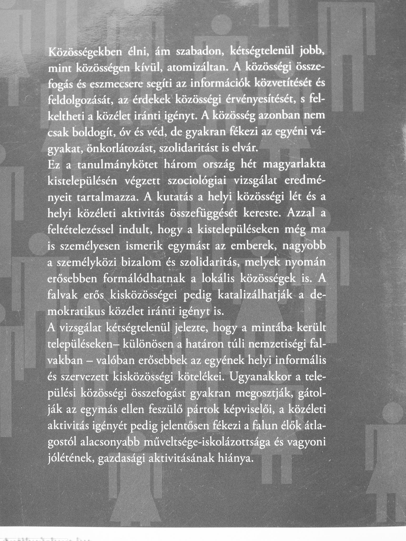 | Sorozatcím: | Közösségi kapcsolatok - Műhelytanulmányok |