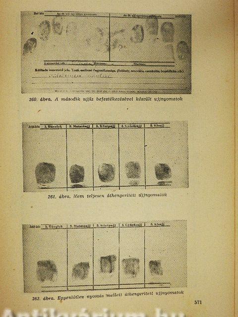 | Az ujjnyomatok osztályozása, tízujjas daktiloszkópiai nyilvántartás | 573 |