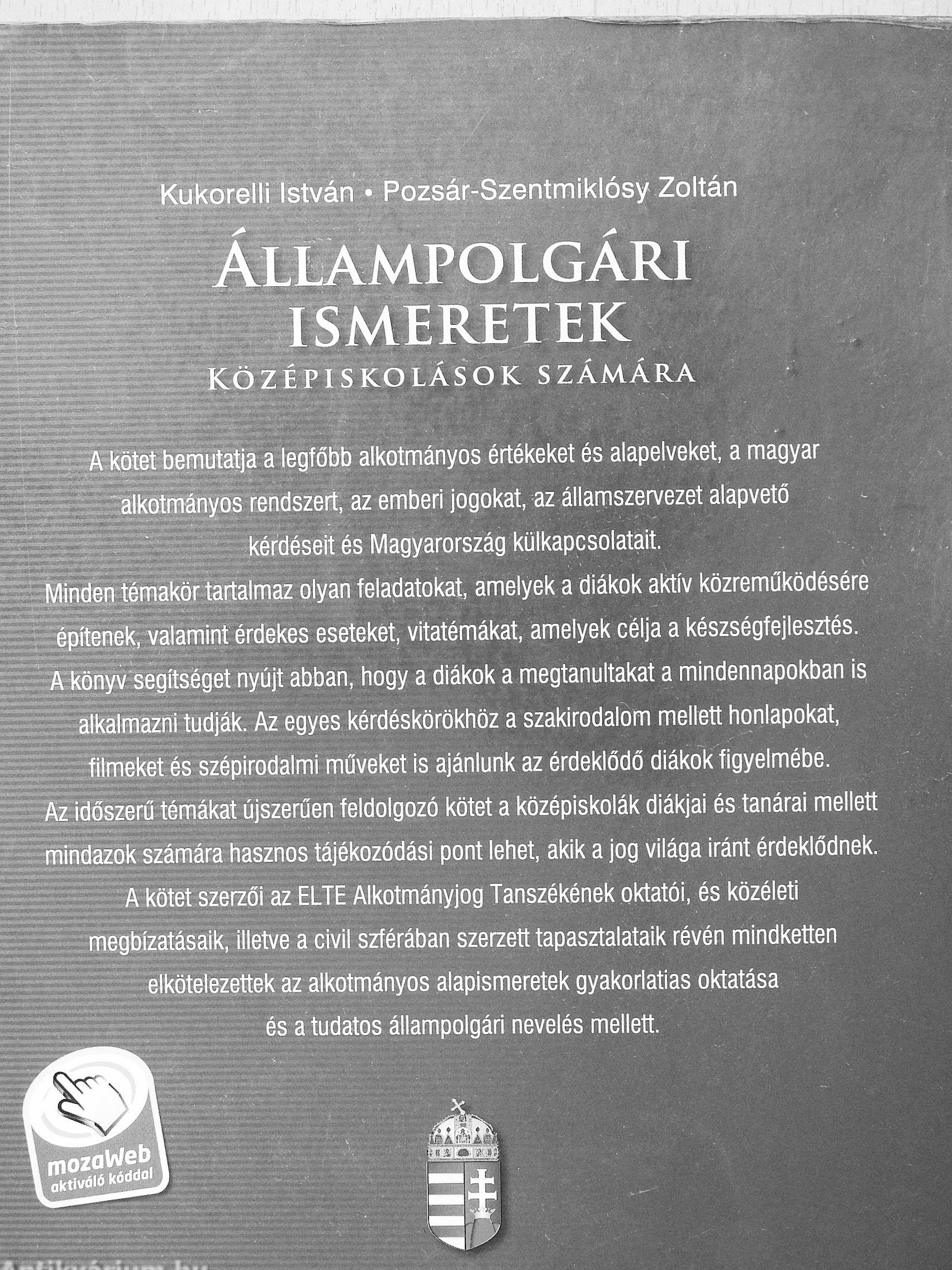 | Megjegyzés: | 4., változatlan kiadás. Színes fotókkal, néhány fekete-fehér illusztrációval, színes térképpel. Tankönyvi szám: MS-2663. |