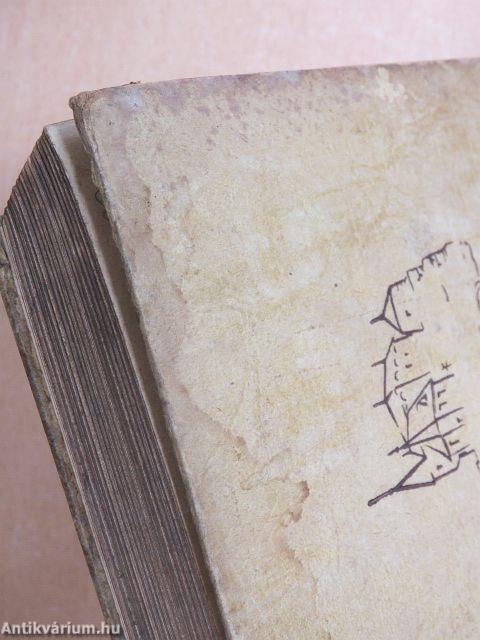 A gerinc és a borító élei sérültek, a borító foltos, kopott. A lapélek és néhány lap foltos.