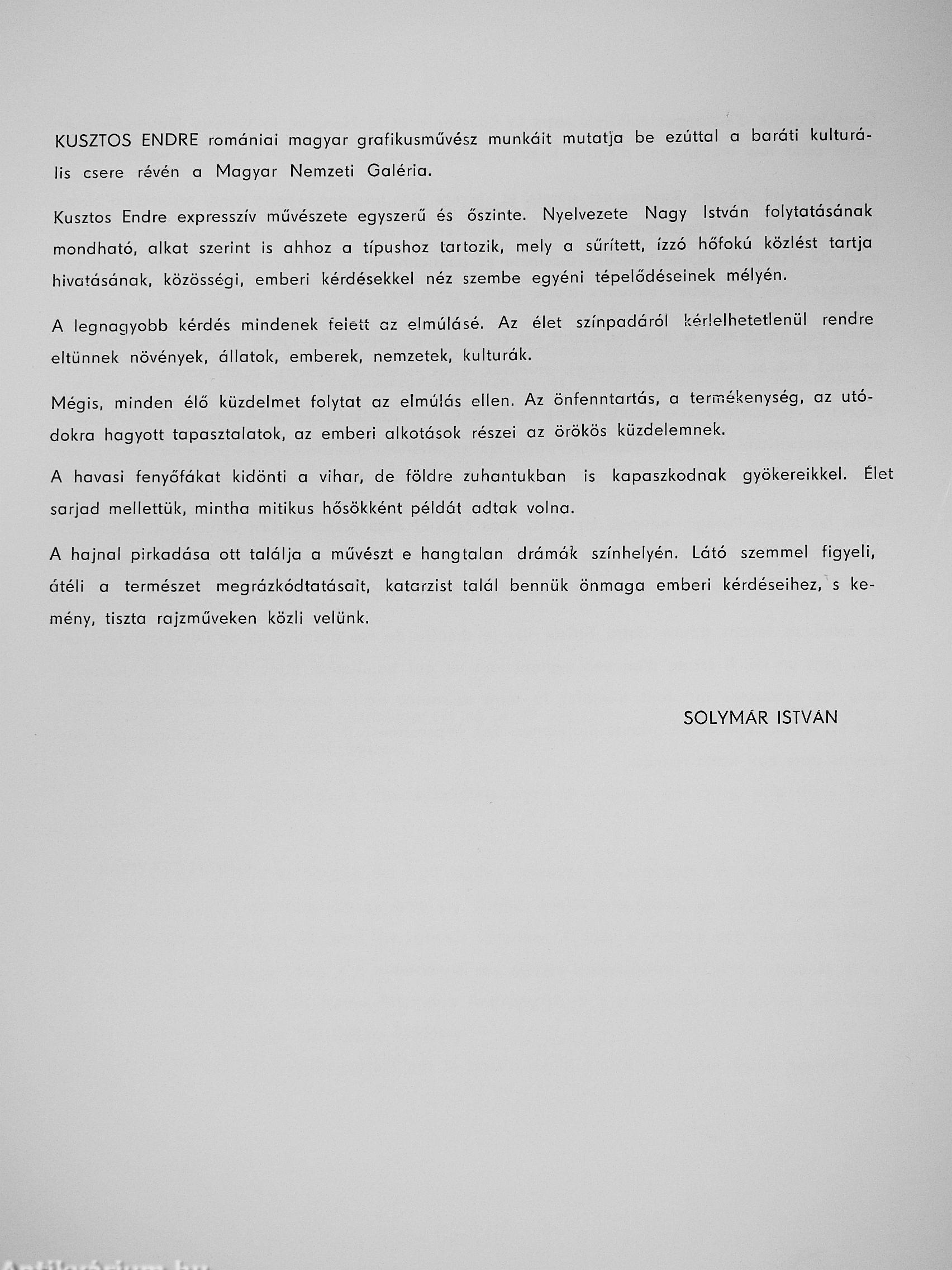 Magyar Nemzeti Galéria Budapest, 1972 október/Exposition D' Endre Kusztos/Galerie Nationale Hongroise Budapest, Octobre, 1972/Kiállítási katalógus