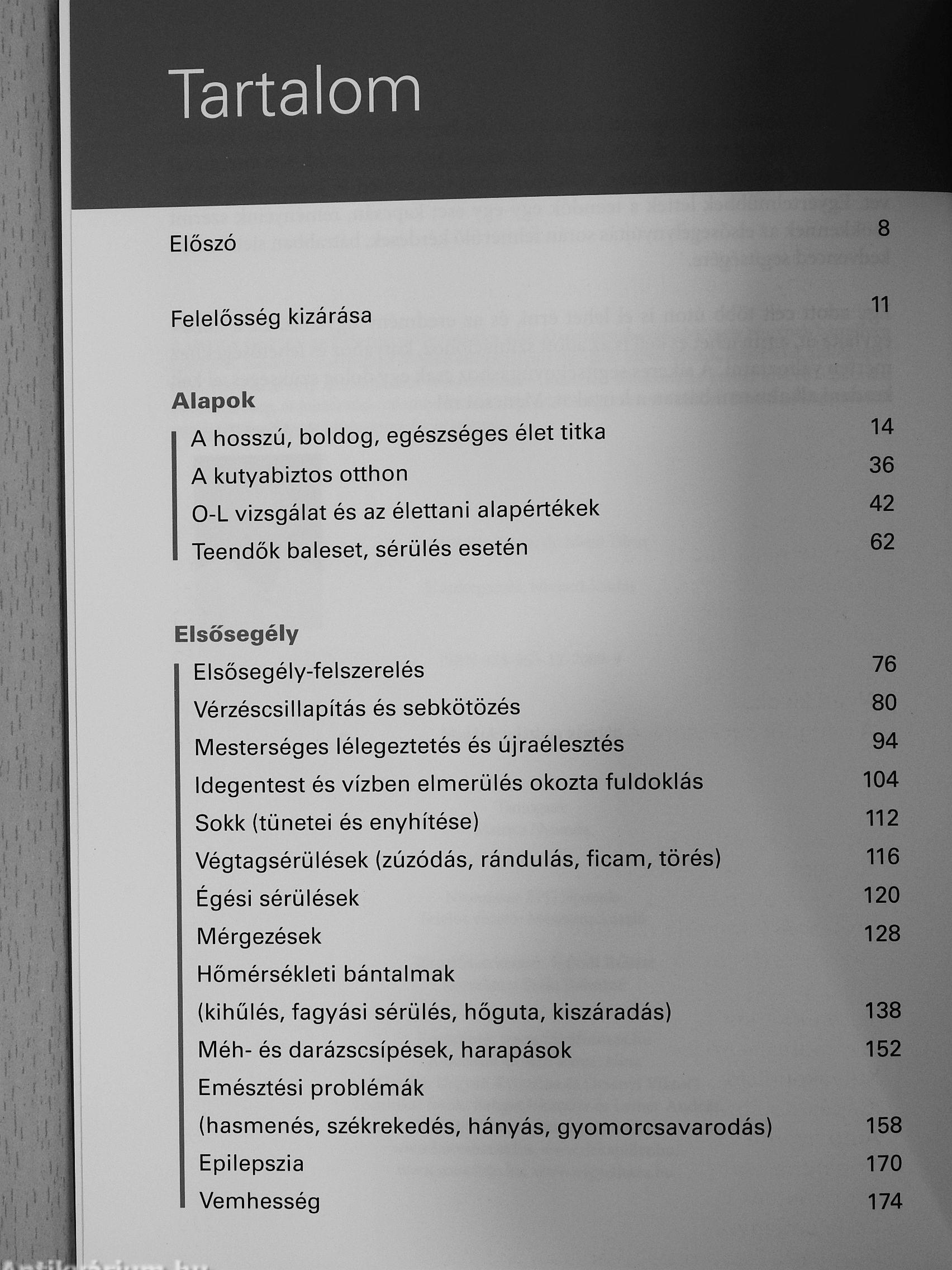 Természetesen a könyvben leírt alap elsősegély-készségek ismerete egyetlen esetben sem helyettesíti a haladéktalan állatorvosi ellátást.