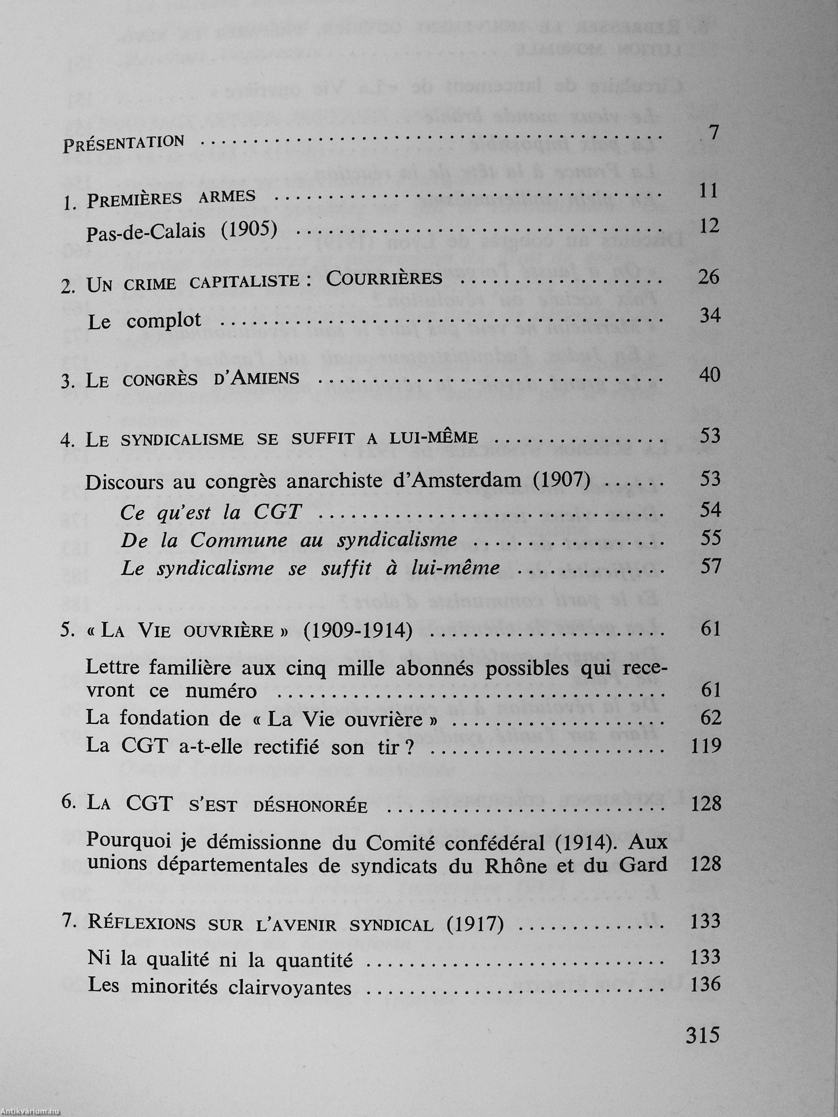 A travers ces textes, le syndicalisme révolutionnaire se précise, son évolution pendant cinquante ans se dessine. Documents pour l'histoire, ce sont aussi des documents pour l'action, aide précieuse pour ceux qui veulent mener la lutte syndicale, avec les seules forces ouvrieres, pour : une révolution qui soit aussi libération.