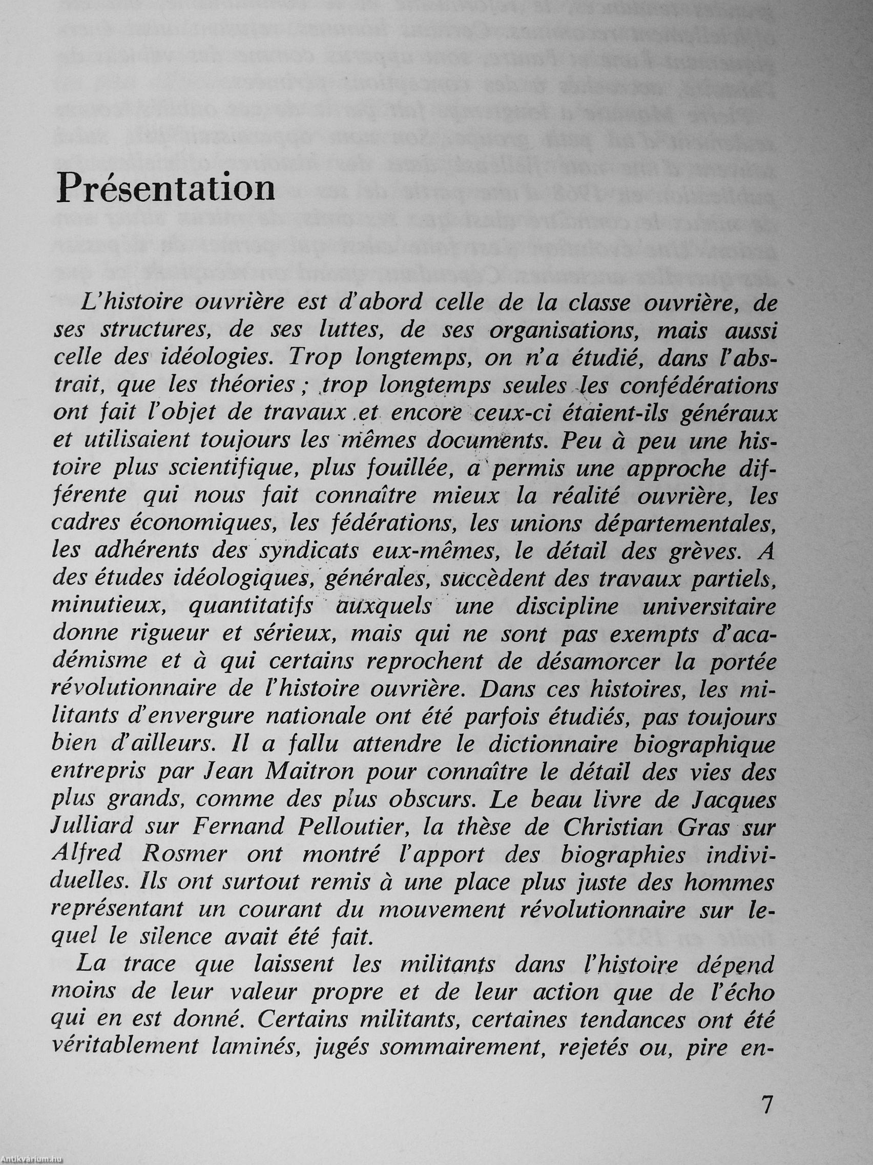 Les rassembler, c'est d'abord permettre de découvrir un homme, un militant au sens plein du terme, un minoritaire qui sut etre a contre-courant sans aigreur comme sans orgueil, qui eut toujours foi dans la capacité révolutionnaire de la classe ouvriere, pensant que celle-ci devait retrouver intelligence et caractere, s'éduquer inlassablement dans l'action, remettre en cause les dogmes les mieux établis.