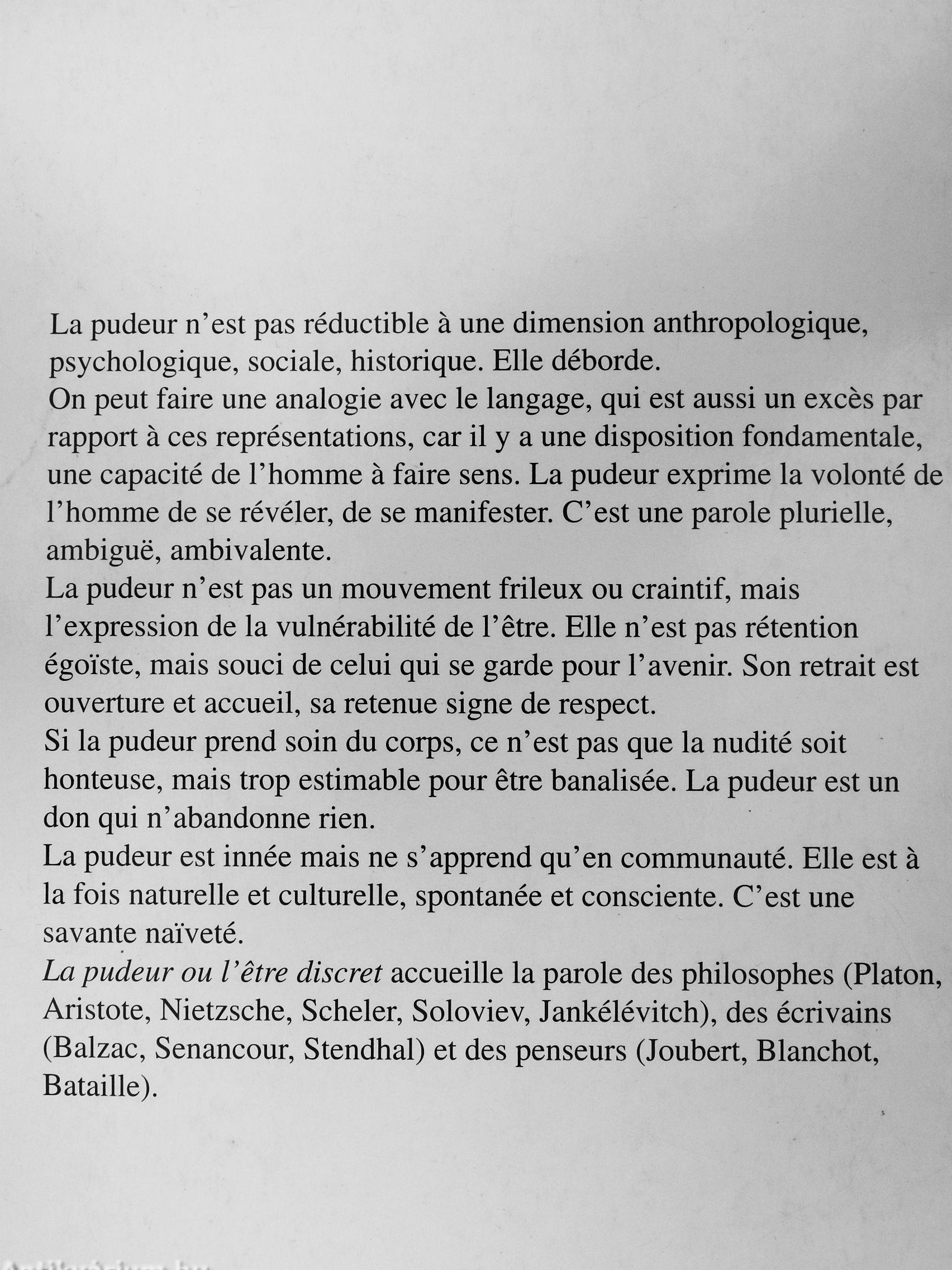 La pudeur ou l'etre discret La pudeur ou l'etre discret La pudeur ou l'etre discret La pudeur ou l'etre discret