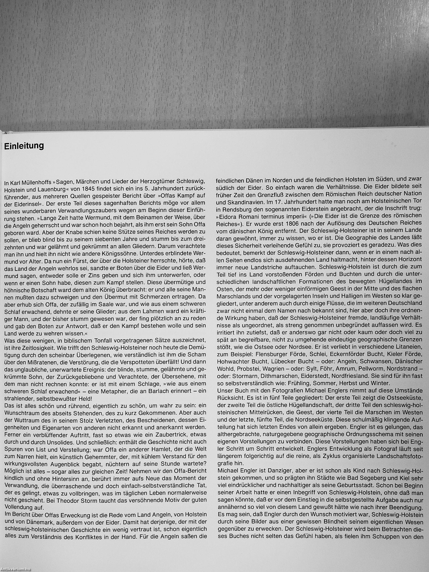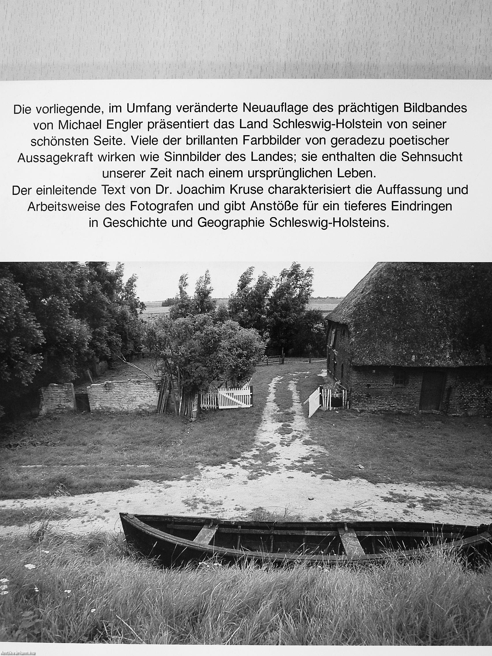 unserer Zeit nach einem ursprünglichen Leben. Der einleitende Text von Dr. Joachim Kruse charakterisiert die Auffassung und Arbeitsweise des Fotografen und gibt Anstöße für ein tieferes Eindringen in Geschichte und Geographie Schleswig-Holsteins.