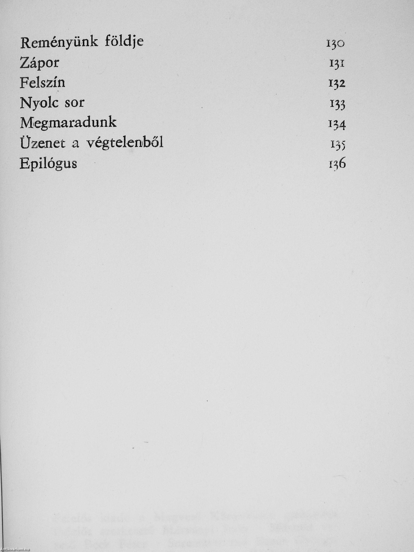 Szegeden születtem, 1933-ban. Tizenhat évig Szegeden, háromig Egerben éltem. Elvégeztem a budapesti egyetem bölcsészkarát. Ezután Debrecenbe kerültem, könyvtárosnak. Első verseimet egy debreceni antológia közölte. T959 óta újra Budapesten élek. A Széchényi Könyvtárban dolgozom. Az itteni Könyvtártudományi és Módszertani Központ recenziós folyóirata, az Űj Könyvek szerkesztője vagyok. Verseim tíz éven át vidéki és fővárosi lapokban, valamint folyóiratokban jelentek meg, rendszertelenül. 1969-ben a Költők egymás közt c. antológiában szerepeltem. A világból, azt hiszem, annyit láttam, amennyit be tudtam fogadni. Az emberekben az értelmet és a szorgalmat keresem. Tisztelem, akiben ez becsületességgel és következetességgel párosul. Az irodalomban szerintem csak lényeges dolgok megfogalmazására van szükség. Az életben is. Ez fonto-sabb, nehezebb. Sokszor egyik sem sikerül. Ilyenkor csak az óra az idő. Munkámat feleségemnek és lányomnak ajánlom.