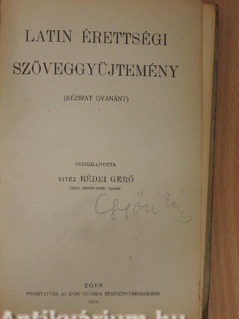 Ezt a gyűjteményt a szükség és a célszerűség állíttatta össze. A szükség, mert ilyen könyv még nincs; a célszerűség, mert sok fárasztó és felesleges munkát akar megszüntetni. - Magam is tapasztaltam, másoknál is láttam, hogy az érettségi vizsgálat előtt, főleg népesebb iskolában, mennyi időbe kerül a vizsgálat értéke s a vizsgázó érdeke szempontjából megfelelő szövegek kiválogatása. Ezt a munkát akarja e könyv feleslegessé tenni, s a szövegek megválogatásában és feldolgozásában épen e két szempontot: a tételnek az érettségi vizsgálatok színvonalához és a vizsgálatot tevők értelmi fejlettségéhez alkalmazkodását tartottam szem előtt. Az elsőt annyiban, hogy a kitűzött szöveg tartalmas, értékes és a latin nyelvben való jártasság bemutatására alkalmas legyen; a másikat annyiban, hogy a szöveg kiszakítottságában is kerek egész s így az előzmények ismerete nélkül is megérthető legyen. Ez utóbbi szempontot a különböző képességű vizsgázók javára könnyebb és nehezebb szövegek felvételével is iparkodtam szolgálni. A fordításban tudatosan inkább hűségre, mint szépségre törekedtem, mert tapasztalat szerint érettségi vizsgálaton a legnagyobb felmutatható eredmény a pontos, szövegmegértést bizonyító hű fordítás. Úgy gondoltam, hogy a tanárnak is jobban a kezére járok, ha művészi szabad fordítás helyett szöveghez szorosan simuló fordítást nyújtok. A nyelvtani rész a nyelvi tények ismeretének, tehát a fordítás tudatosságának; a szöveggel kapcsolatos reáliák s irodalomtörténeti vonatkozások pedig „a római nép életében s irodalmában való tájékozottság" bizonyítására alkalmasak.