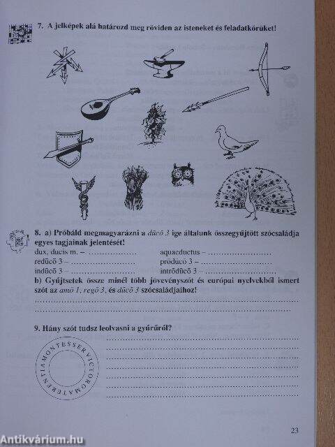 Lexikai feladatai a szókincs elmélyítését segítik, kapcsolatba hozva a latin szavakat a mai magyar, német, francia, olasz szavakkal, kifejezésekkel.