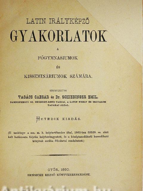 | Megjegyzés: | Hetedik kiadás. Latin nyelvű szószedettel. Szerkesztve Vagács Caesár és Dr. Schiebinger Emil pannonhegyi sz. Benedek-rend tagjai, a latin nyelv és irodalom tanárai által. Nyomatott Fischer István és F. könyvnyomdájában, Győrött. |