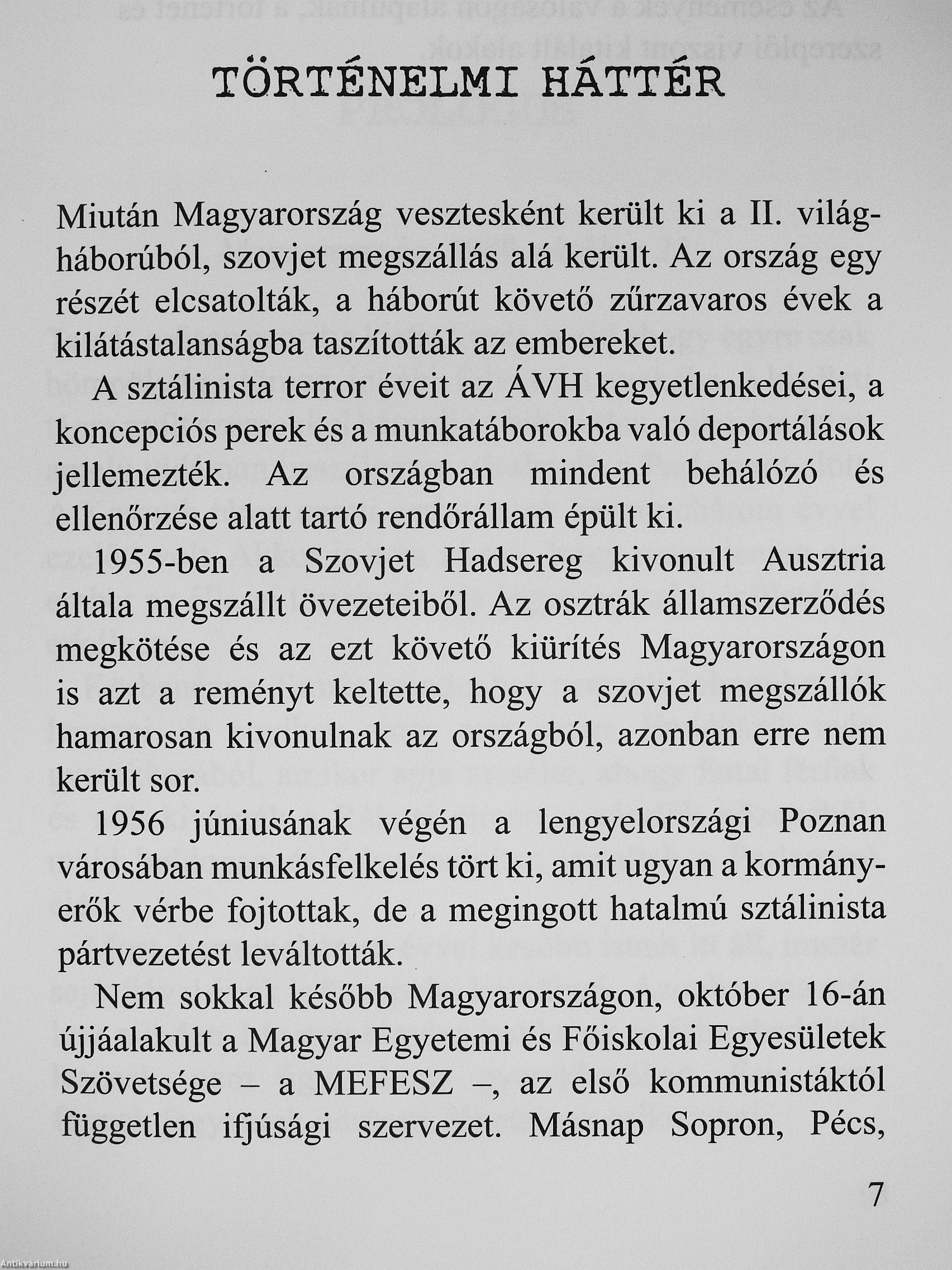Miután Magyarország vesztesként került ki a II. világháborúból, szovjet megszállás alá került. Az ország egy részét elcsatolták, a háborút követő zűrzavaros évek a kilátástalanságba taszították az embereket.
