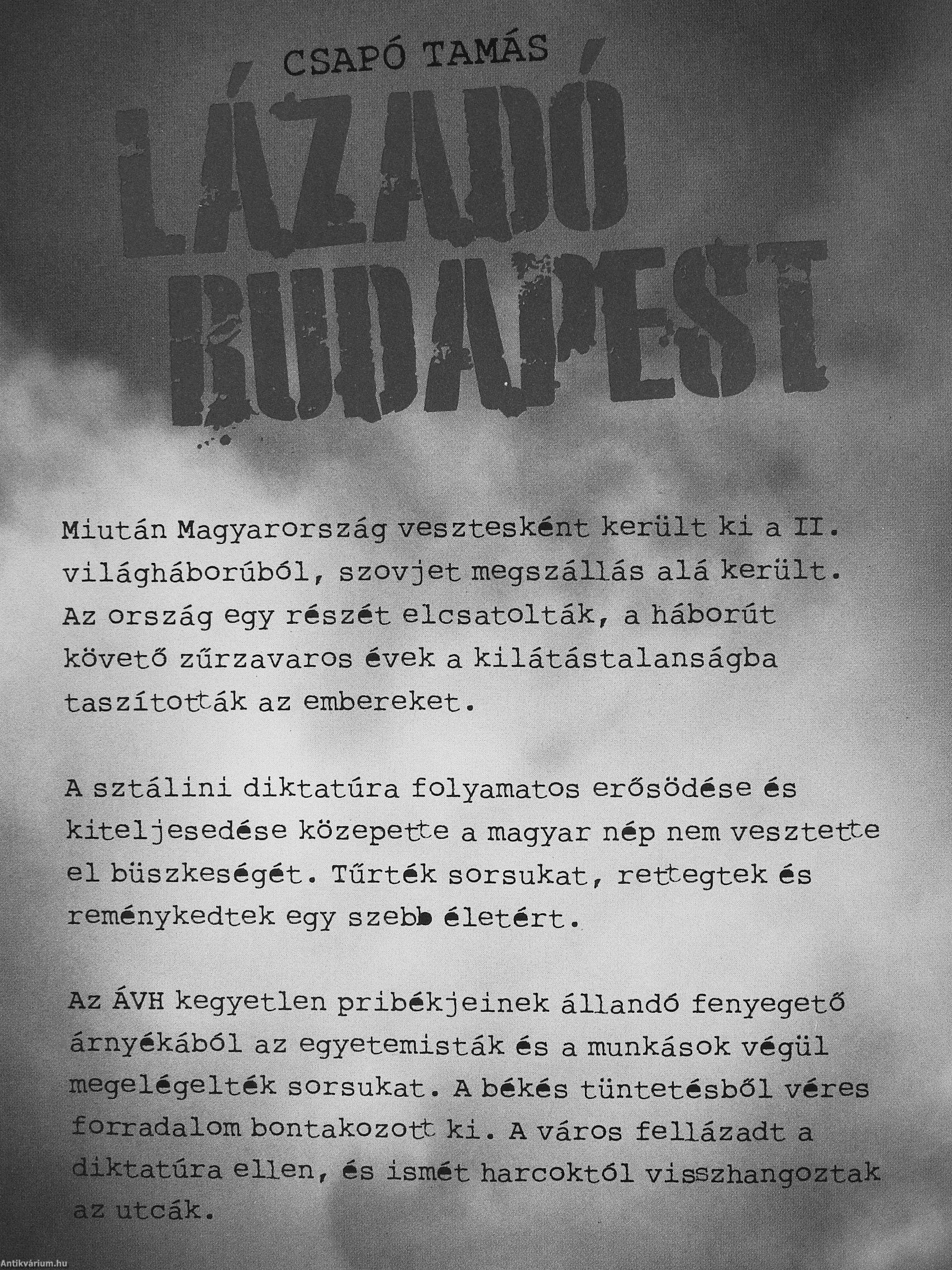 Az ÁVH kegyetlen pribékjeinek állandó fenyegető árnyékából az egyetemisták és a munkások végül megelégelték sorsukat. A békés tüntetésből véres forradalom bontakozott ki. A város fellázadt a Jxktatúra ellen, és ismét harcoktól visszhangoztak utcák.