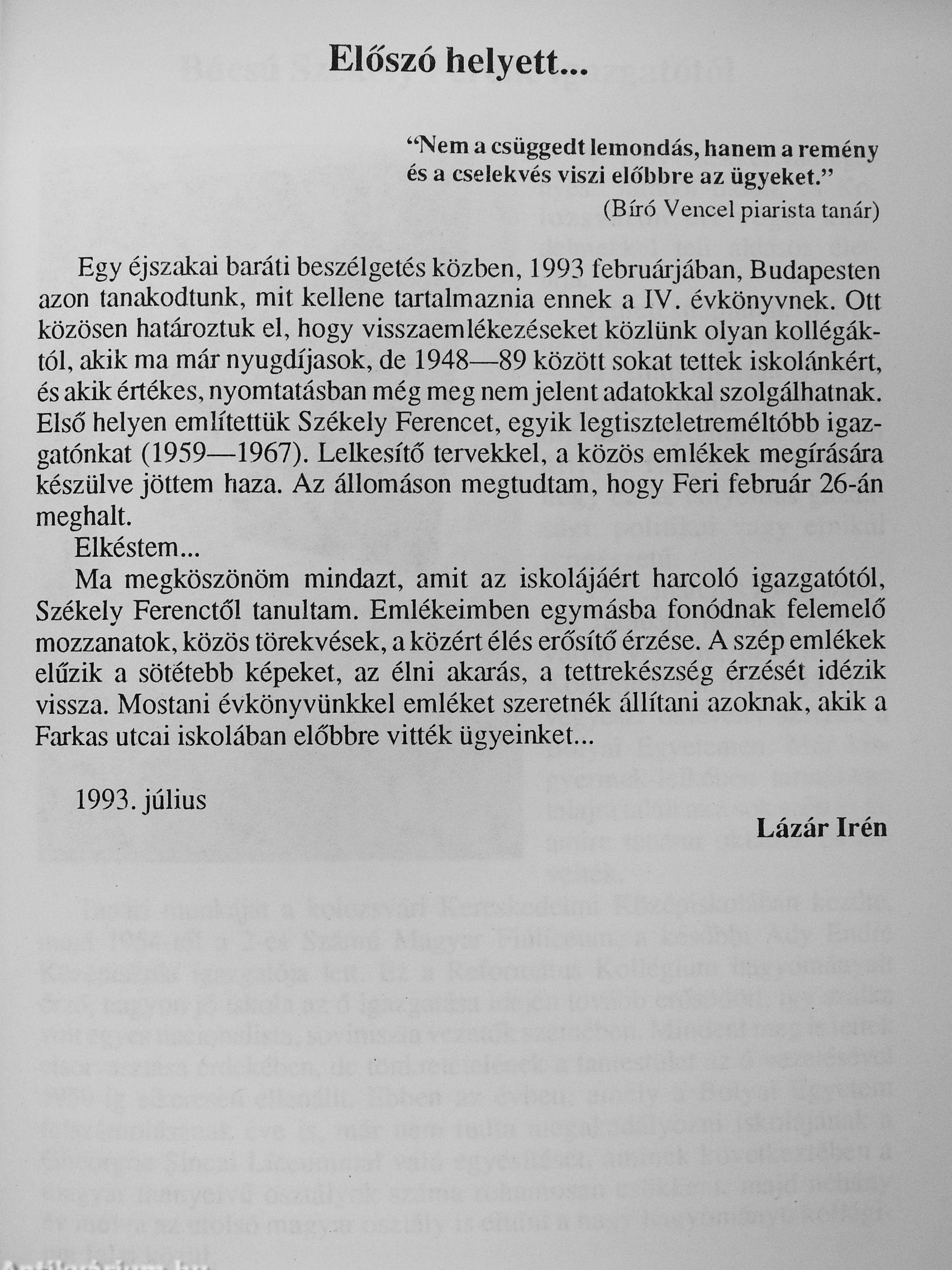 A kolozsvári Báthory István alapította 414 éves líceum kiadványa
