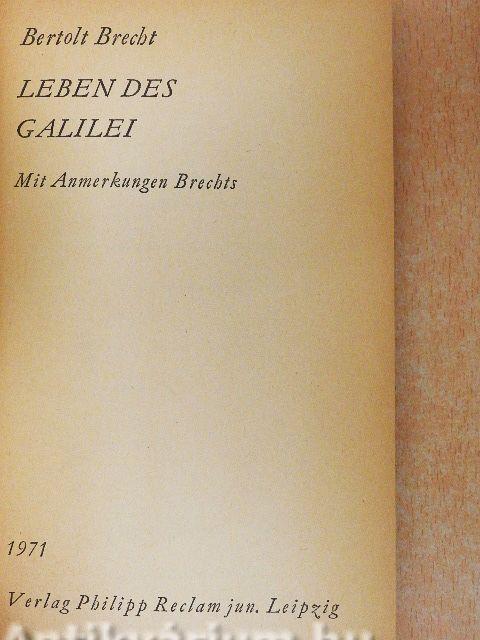 | A könyvecske Bertold Brecht drámáját tartalmazza, aminek központi kérdése az, hogy a tudomány mennyiben felelős a pusztításért, az atombomba fenyegetéséért. |