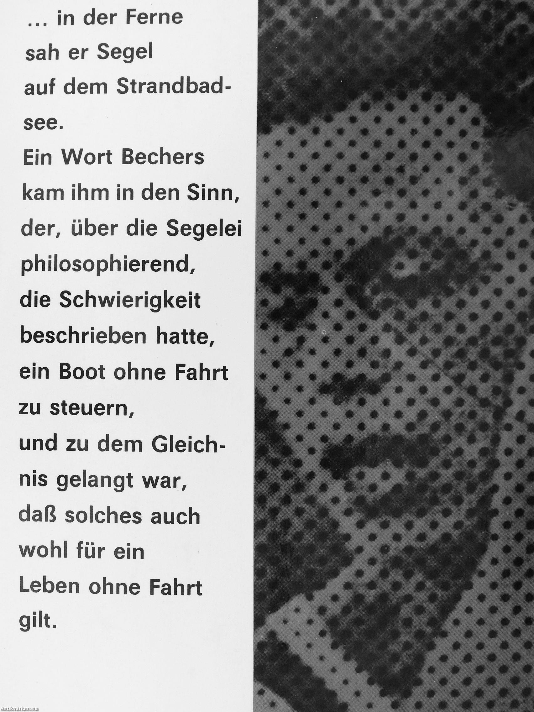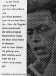 Ein Wort Bechers kam ihm in den Sinn, der, über die Segelei philosophierend, die Schwierigkeit beschrieben hatte, ein Boot ohne Fahrt zu steuern, und zu dem Gleichnis gelangt war, daß solches auch wohl für ein Leben ohne Fahrt gilt.