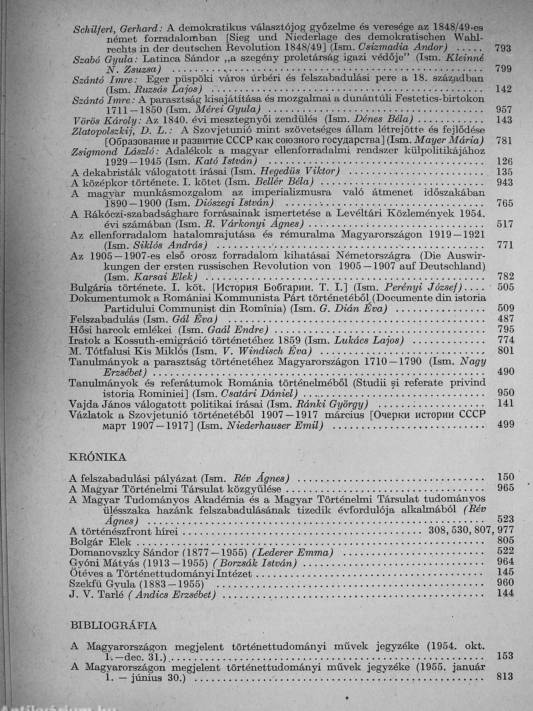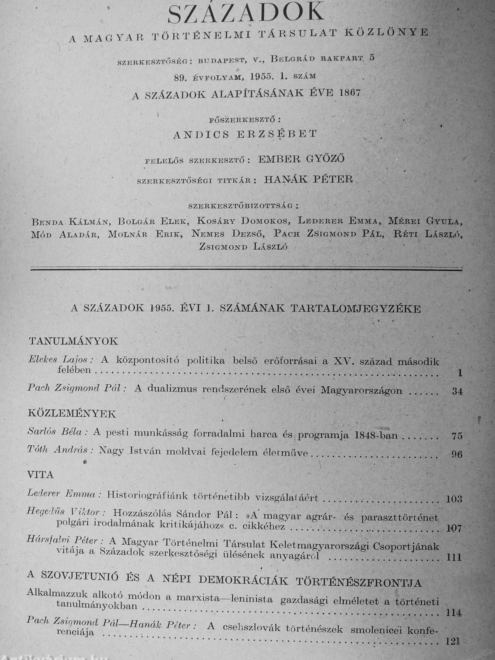 a századok 1955. évi 1. számának tartalomjegyzéke tanulivlánygk