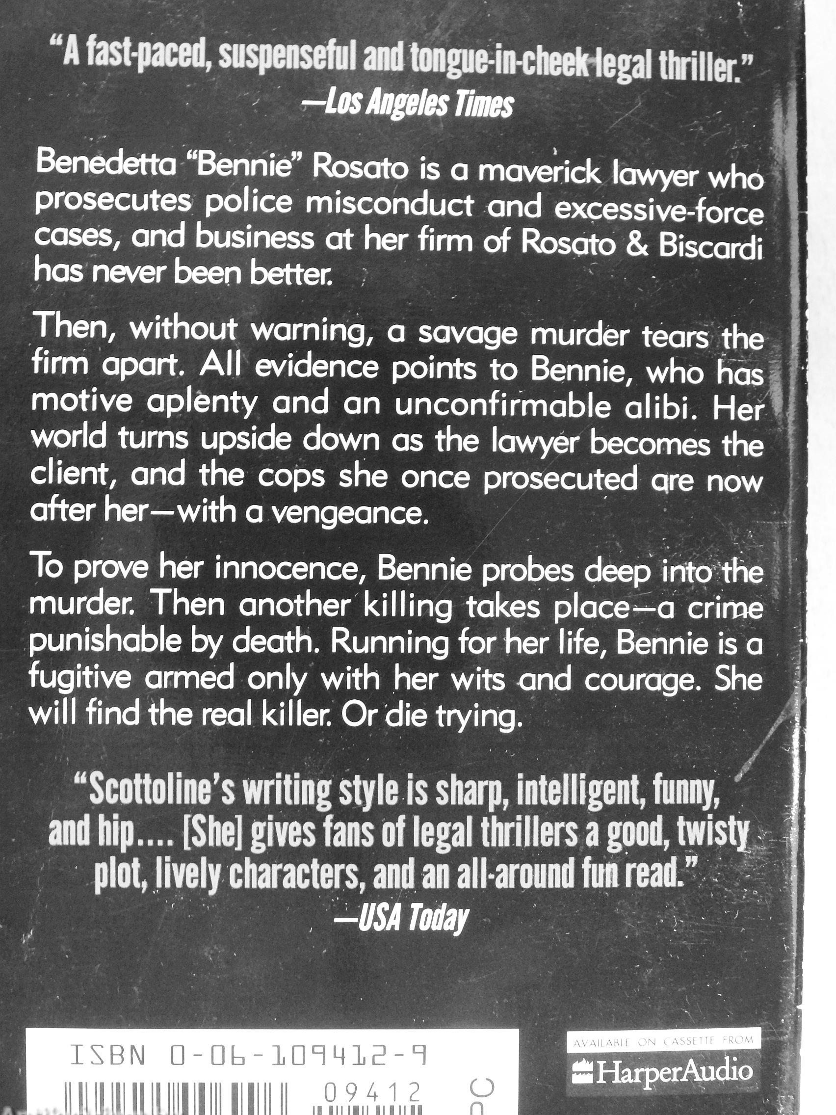 Then, without warning, a savage murder tears the firm opart. All evidence points to Bennie, who hcis| motive oplfenty and on unconfirmable alibi. Hefl world turns upside down as the lawyer becomes the client, and the cops she once prosecuted are now after her—with o vengeance.
