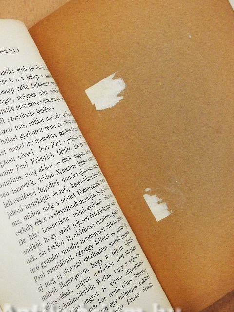 A kötés megerősített. A gerinc javított. A borító éle sérült. Néhány lap foltos. Két ex-libris melléklet hiányzik a könyvből.