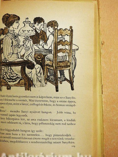 | amelyben kitűnik, hogy Misi olyan gyerek, aki nem szereti, ha vele foglalkoznak, kivált amikor valami kellemetlenség áll a háta mögött, hagyják békén, jó ilyenkor haza és a nagy gondokra gondolni, jó elfelejteni a nagy mellett a kis bajt | 184 |
