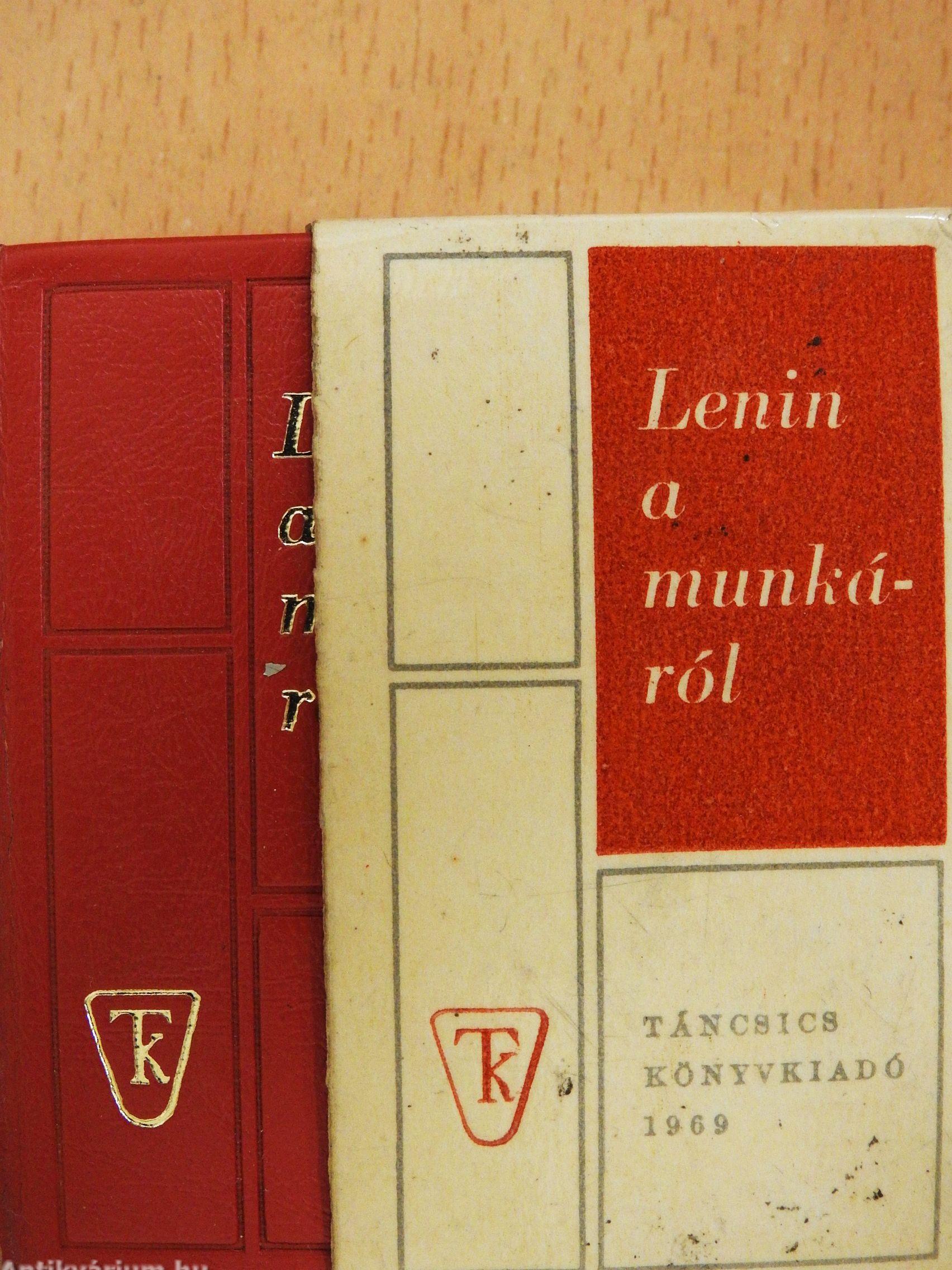 | Megjegyzés: | Számozatlan kiadás. Kiadott példányszám: 5000 Könyvtervező: Soproni Béla Nyomda: Atheneaum Nyomda, Budapest Nyomás módja: Íves magasnyomás Kiadási alkalom: Megjelent a Szocialista Brigádvezetők III. Országos Tanácskozása alkalmából. A gyűjteményt a Szikra kiadásában (1951-1956) megjelent Lenin Művei alapján állítottuk össze. Eredeti kiadói papír védődobozában. A könyv pontos mérete: 40 x 64 mm. |