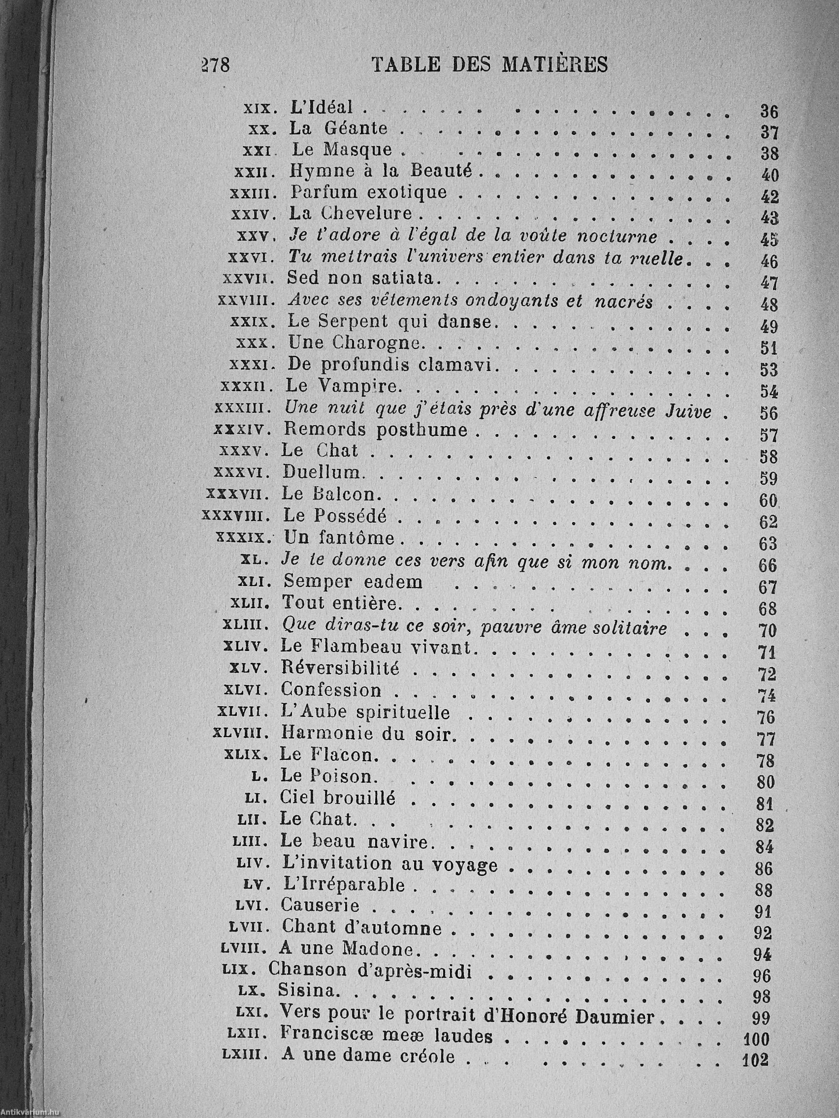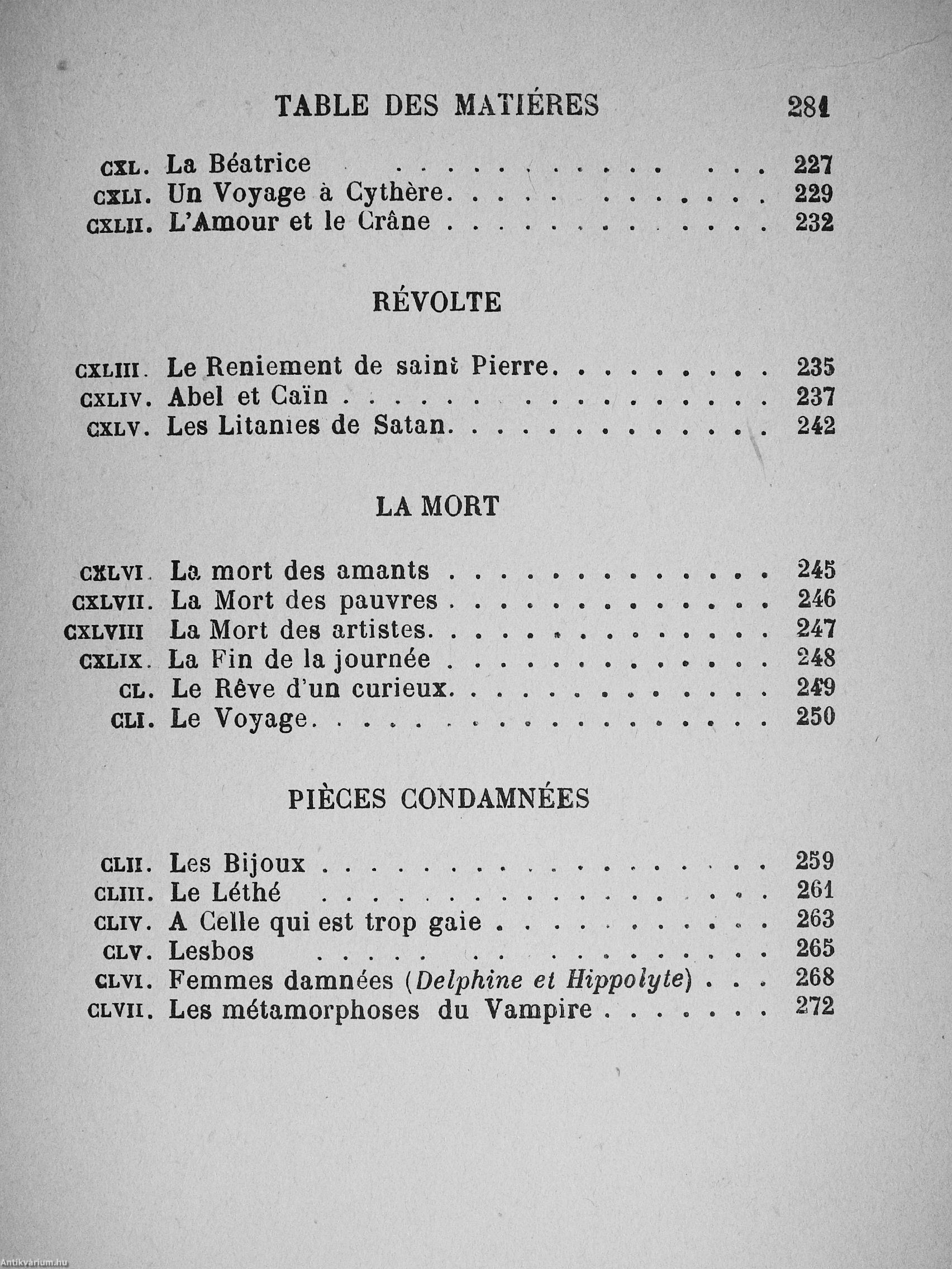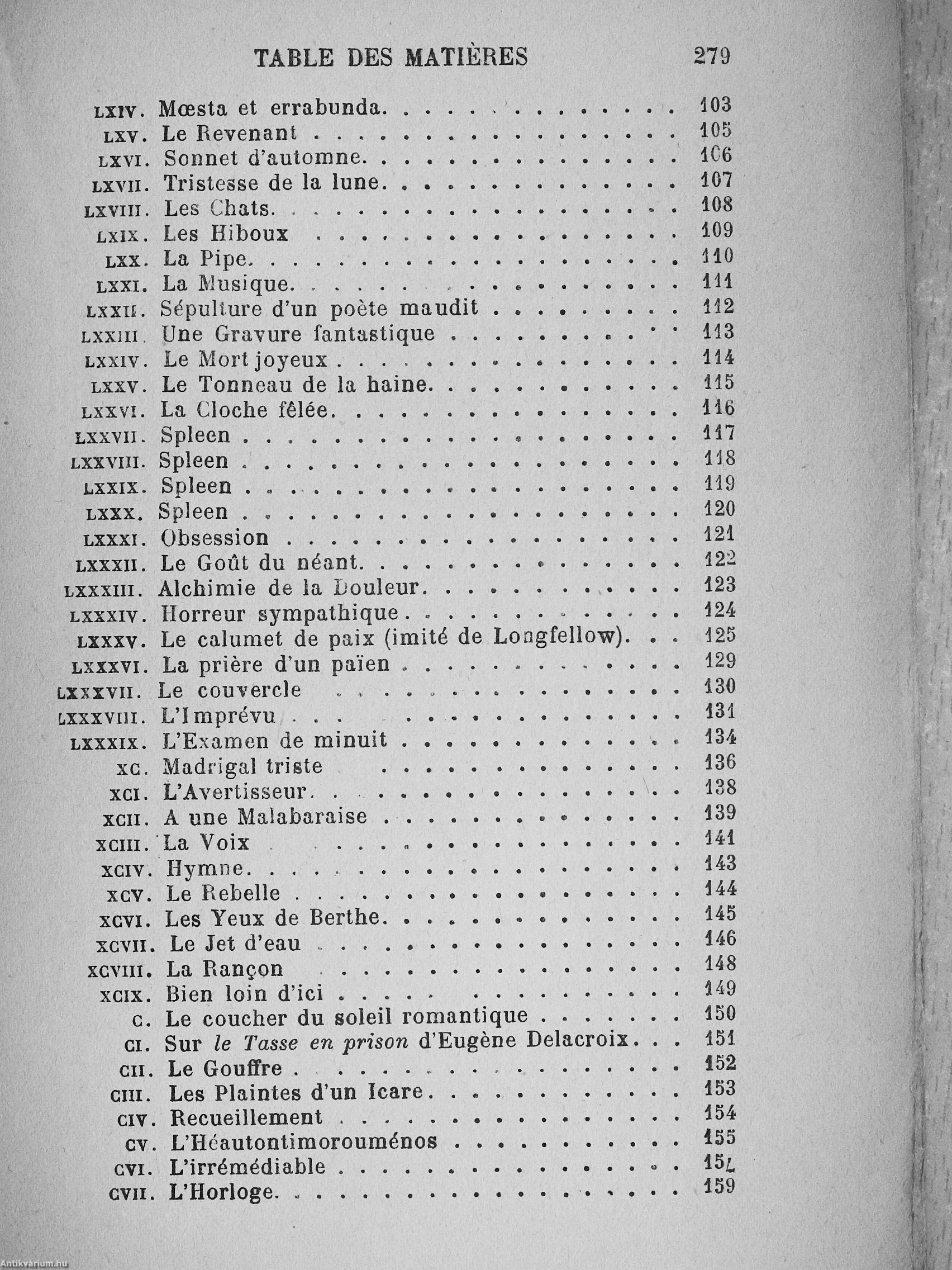 Baudelaire egész költészete a válasz erre, de különösképpen azok a versek, amelyekben a vonzás mellett, illetve azzal szemben ott lappang valami nehezen megokolható taszítás is. A szépség, az emelkedettség, a finomság erejével szemben az immorális, a szeretettel együtt a gyűlölet, a fölemelkedés vágya mögött a bukás, a szédülés, az elkárhozottság tudata.
