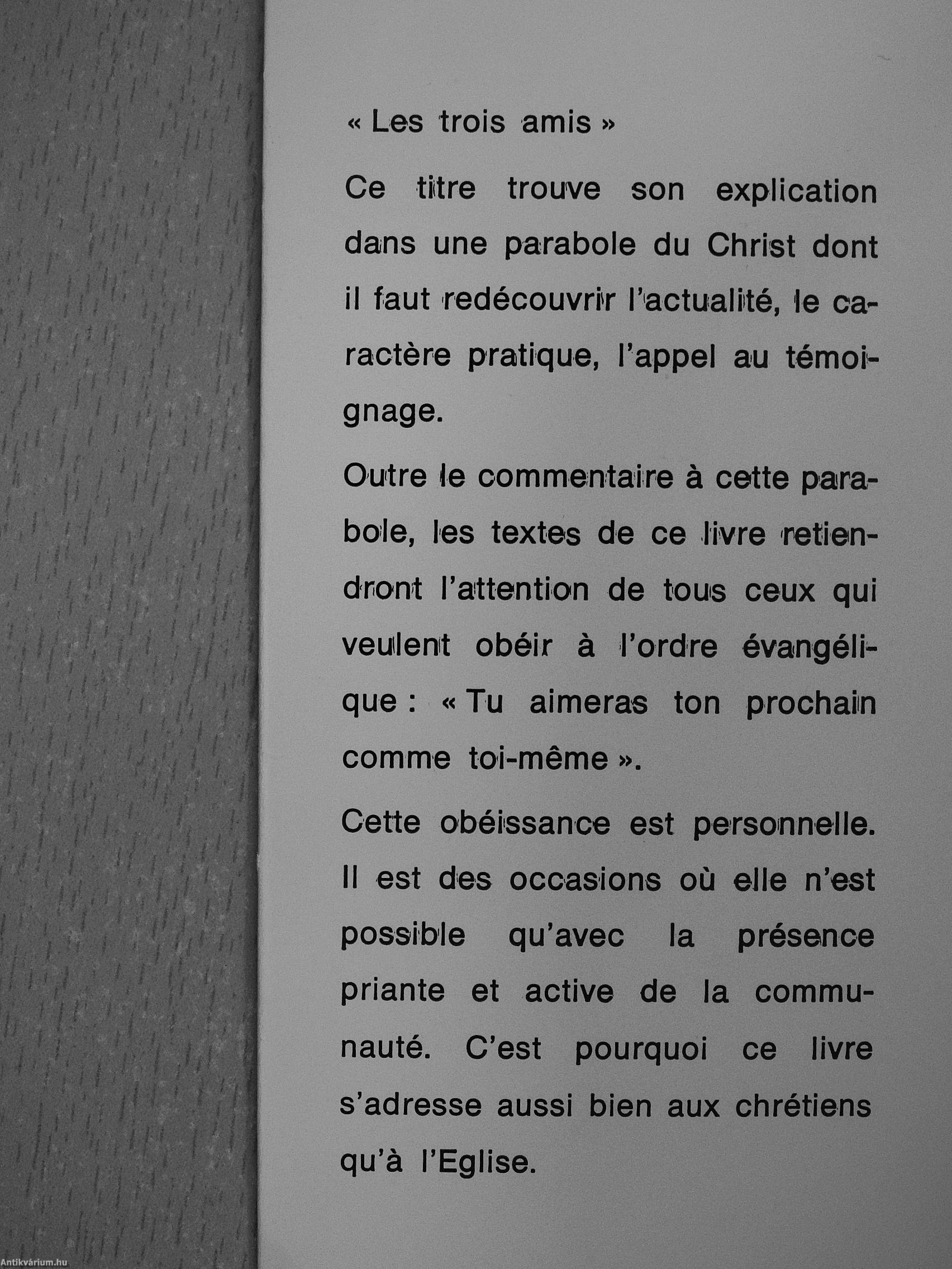 Outre le commentaire a cette parabole, les textes de ce livre retiendront rattention de tous ceux qui veulent obéir a l'ordre évangéli-que : « Tu aimeras ton prochaim comme toi-meme ». Cette obéissance est personnelle. Il est des occasions ou elle n'est possible qu'avec la présence priante et active de la communauté. C'est pourquoi ce livre s'adresse aussi bien aux chrétiens qu'a l'Eglise.