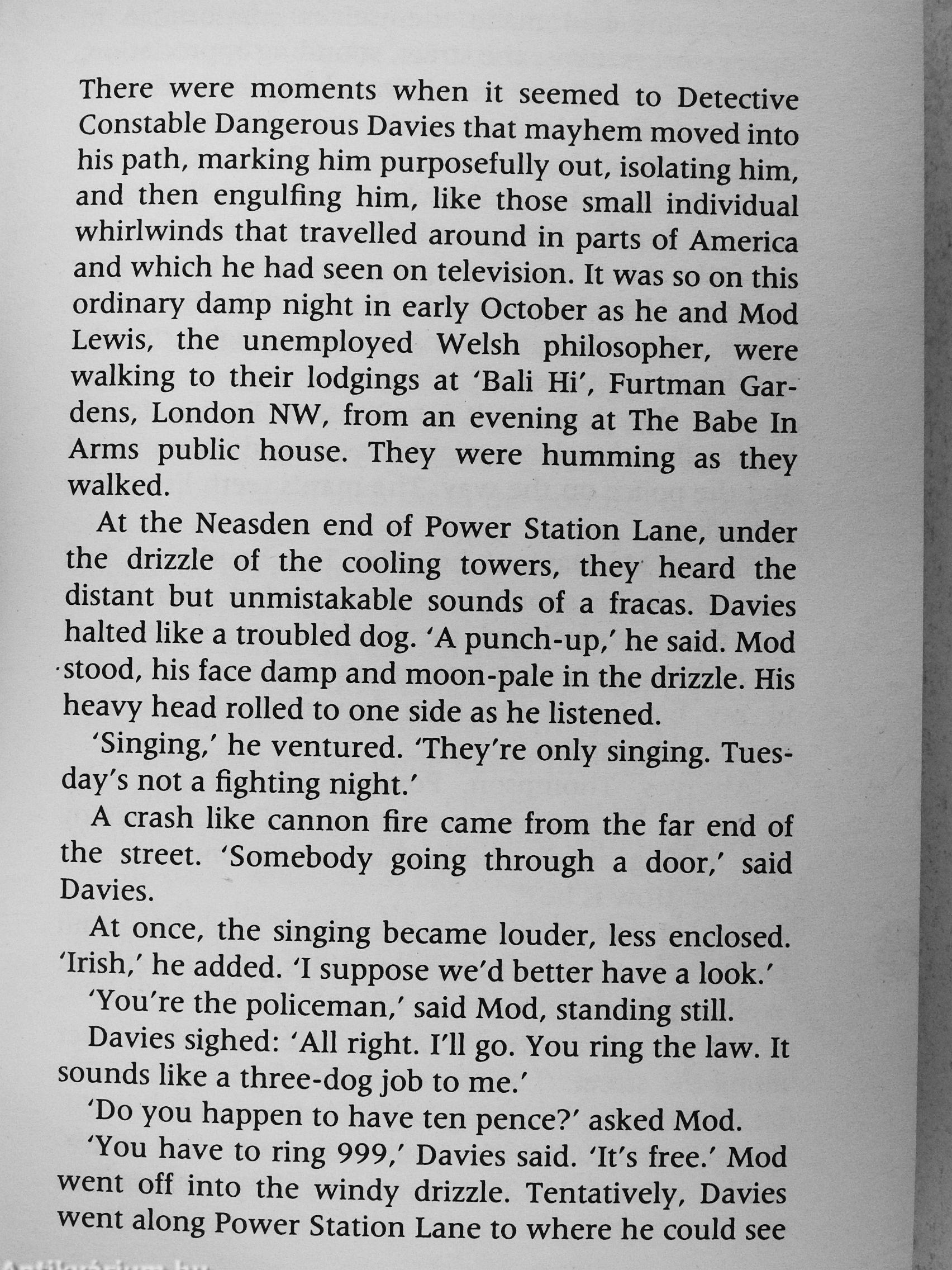 Detective Constable Davies has two things on his mind: Jemma Duval, the beautiful, black, hymn-singing social worker, and 'Lofty' Brock, the harmless old eccentric who drowned in the canal. To prove that Lofty's death was no accident, our hero sets out to do some undercover detective work on his own. He soon discovers that something sinister is going on. Something that requires intuition, dedication, brilliant deduction - and a timely blow with a blunt instrument.