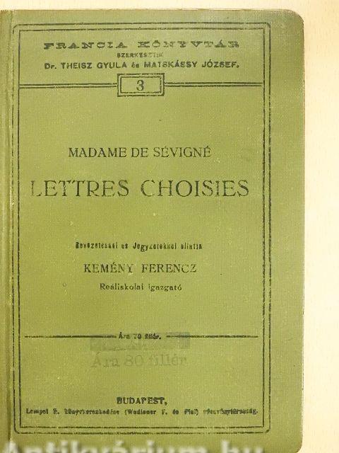 Madame de Sévigné műveinek az Antikvarium.hu-n kapható vagy előjegyezhető listáját itt tekintheti meg: Madame de Sévigné könyvek, művek