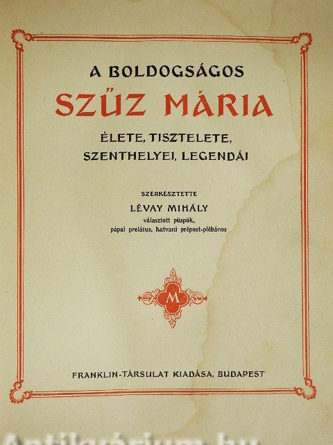 Ritka jelenség lesz irodalmunkban ez a könyv, amely most hagyta el a sajtót. „A Boldogságos Szűz Mária élete, tisztelete, szenthelyei, legendái" címen olyan ritka könyvhöz jut a magyar irodalom, amelyhez fogható eddig nem volt.