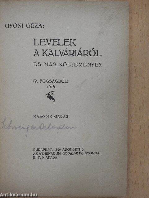 | Megjegyzés: | Az Athenaeum nyomása, Budapest. Második kiadás. |