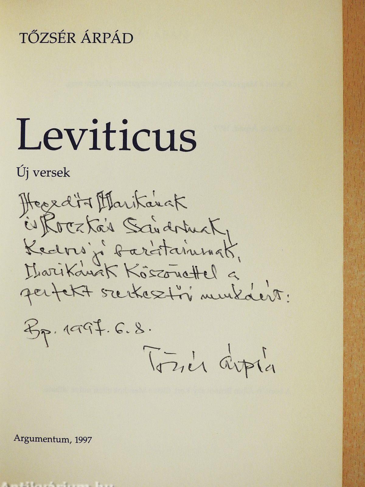 | Megjegyzés: | Tőzsér Árpád szerző által dedikált példány. |