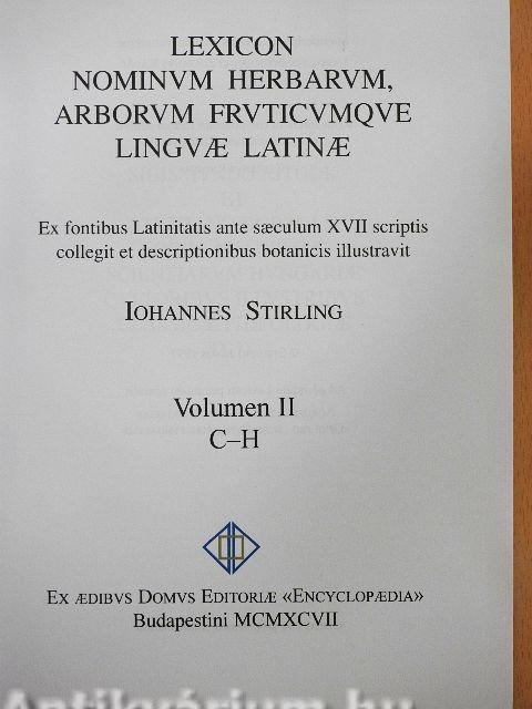 Sorozatcím: Lexicon Nominum Herbarum, Arborum Fruticumque Linguae Latinae