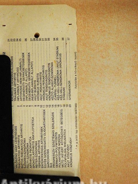 A reumás betegségek igen elterjedek. Szinte alig van felnőtt ember, akinek életében pl. dereka ne fájt volna. Az arthrosis, a lágyrészreumatizmus a népesség 20-30%-ának okoz legalábbis időnként panaszokat; de az állandó orvosi kezelésre, ellenőrzésre szorulók száma is jelentős. A gyulladásos reumás betegségek és az ú.n. kötőszöveti betegségek előfordulása sokkal ritkább az átlag népességben: 2%-nál semmiképp sem több. Ezek a betegségek azonban igen súlyos mozgásszervi és belsőszervi károsodást okozhatnak, s a kötőszöveti betegségek az életet is veszélyeztetik. E betegek elsősorban szakorvosi ellátásra szorulnak, de az alapellátás orvosának fontos szerep jut a korai diagnózis megállapításában, s később e betegek gondozásában. A reumás betegek döntő többségét kitevő degeneratív ízületi vagy gerincbetegségben, lágyrészreumatizmusban (tendinitis, bursitis, epicondylitis, periarthritis) szenvedők legnagyobb részét az általános orvosnak kell kezelnie, gondoznia: szakorvosi kezelésre csak betegségük egyes fázisaiban lehet szükség. Reumatológiai képzés egyetemeinken azonban nincs, ezért nem csoda, hogy általános orvosaink reumatológiai tudása és gyakorlata hézagos. Ez a reumás betegségek gyógyszeres kezelésében is megnyilvánul; tapasztalataink szerint sokszor inadekvát módon alkalmaznak antireumás gyógyszereket. Ezért olyan információs rendszert dolgoztunk ki, mely rövid leírást ad egyes reumás betegségekről, a gyógyszerrendelést befolyásoló legfontosabb fiziológiás állapotokról és kísérőbetegségekről, valamint az egyes antireumás gyógyszerekről. (Utóbbiakról nem tartalmazza ugyan mindazt, amit az "Útmutató a gyógyszerkészítmények rendeléséről" c. kiadvány, viszont klinikai tapasztalattal kiegészíti azt.) Vissza